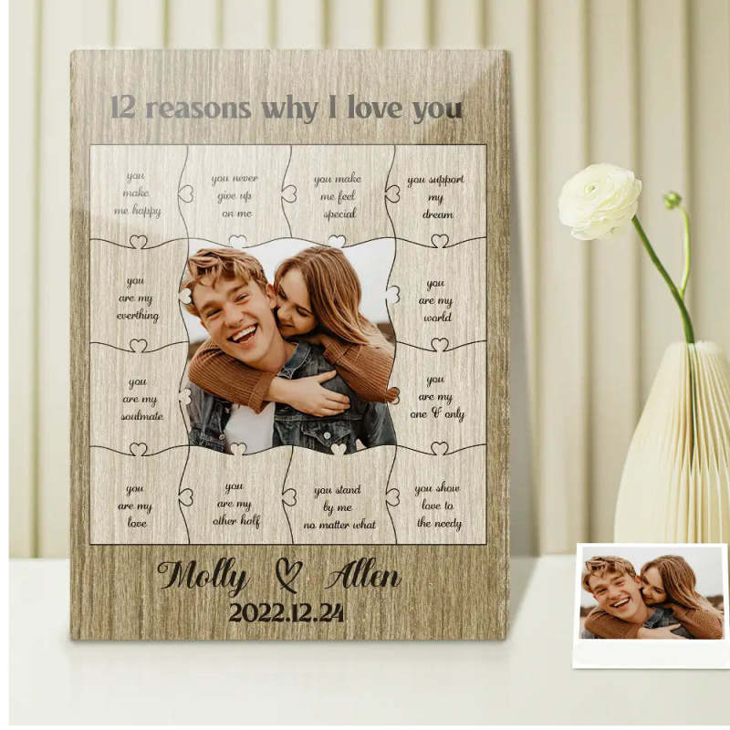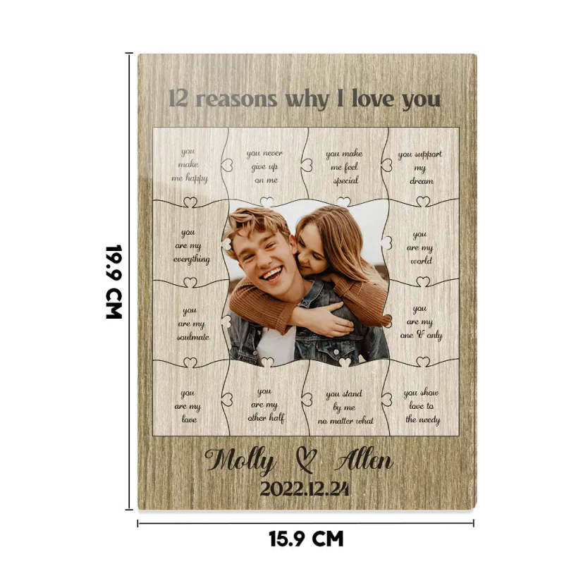 12 Reasons Why I Love You with Acrylic Photo, Wooden Box and Puzzle, Personalized Valentine's Day or Romantic Anniversary Gift for Boyfriend