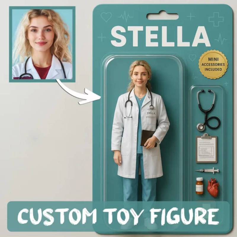 Custom Action Figure Pack Keychain 2D Printed with 3D Style Packaging Toy Box Style Art Gift Personalized Acrylic Car Hanger Gift for Mother
