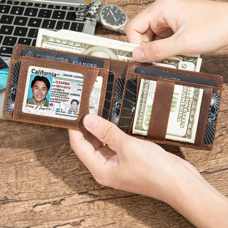 Airtag Men's Wallet Vintage Card Holder Leather Money Clip