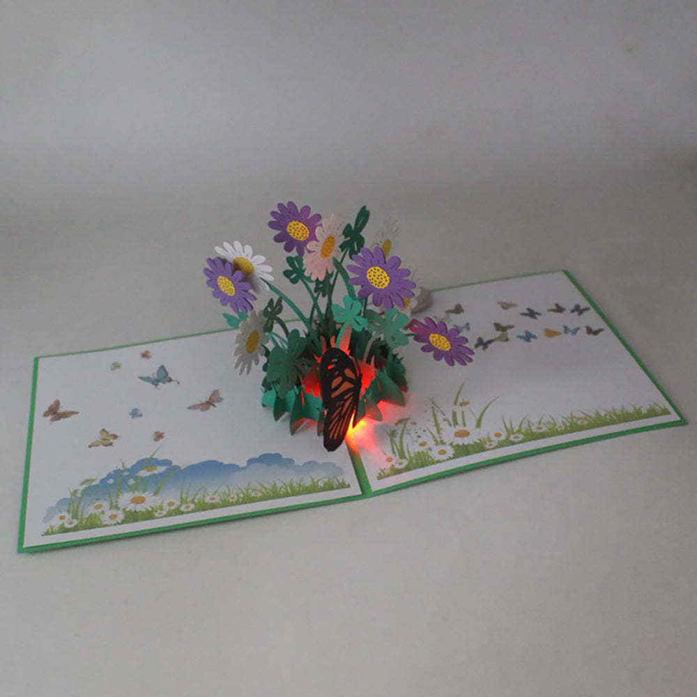Birthday Music Wild Chrysanthemum 3D Pop Up Cards Led Light Pop Up Greeting Card