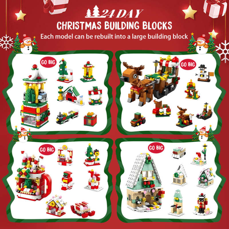 Christmas Sleigh Brick Figures Blind Box Christmas Brick Figures Surprise Blind Box 24 Calendar Countdown Gift Box