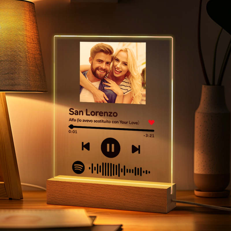 Gifts For Her Spotify Glass Plaque Custom Photo Scannable Music Night Light Valentine's Day