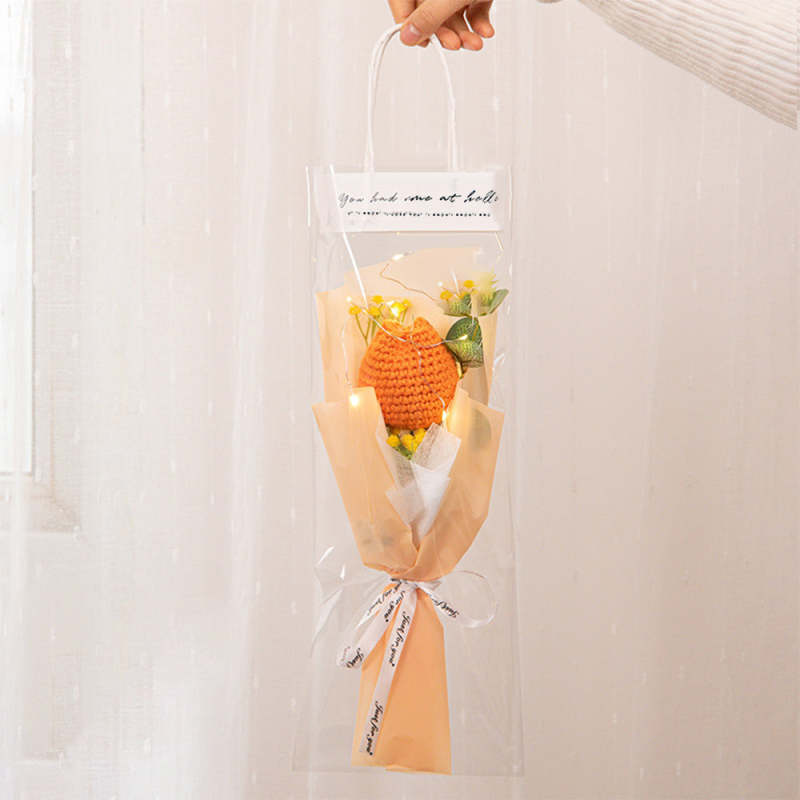 Crochet Flowers Bouquet Handmade Knitted Tulip Carnation Bouquet with Light Strip Gift for Her