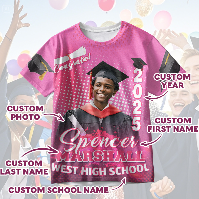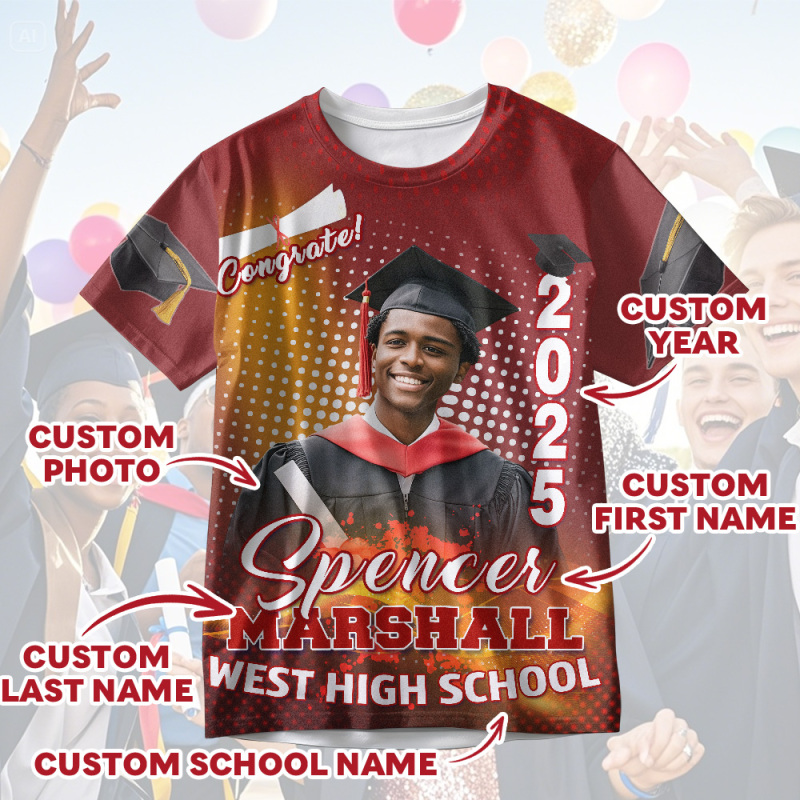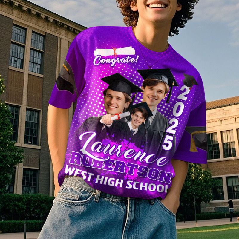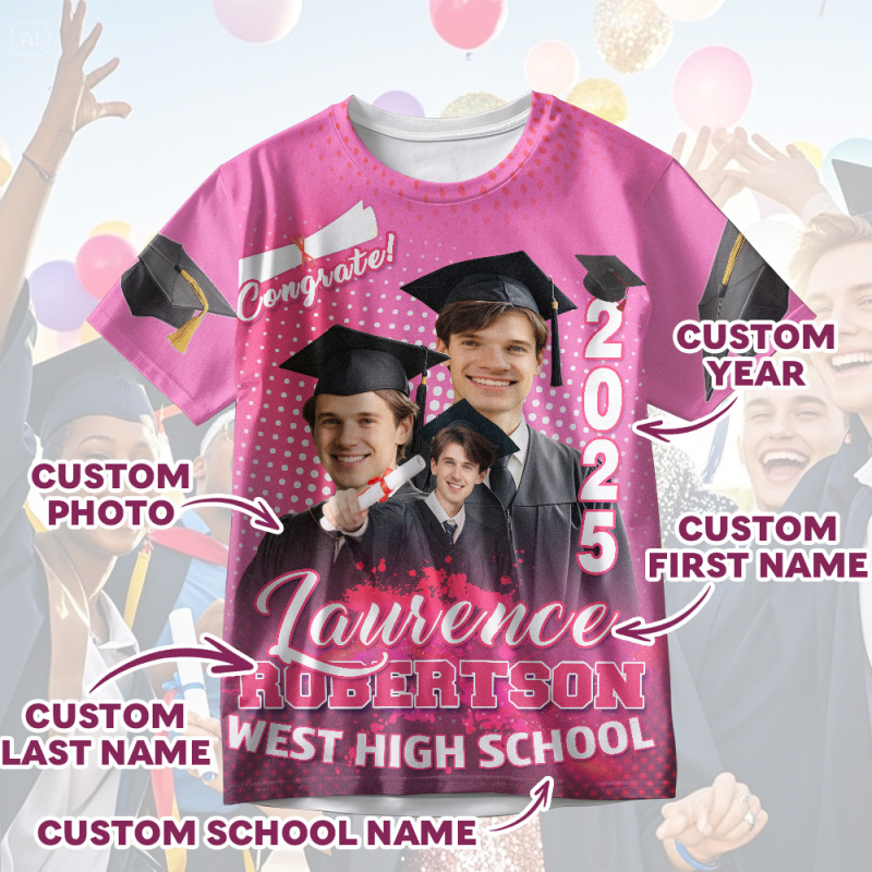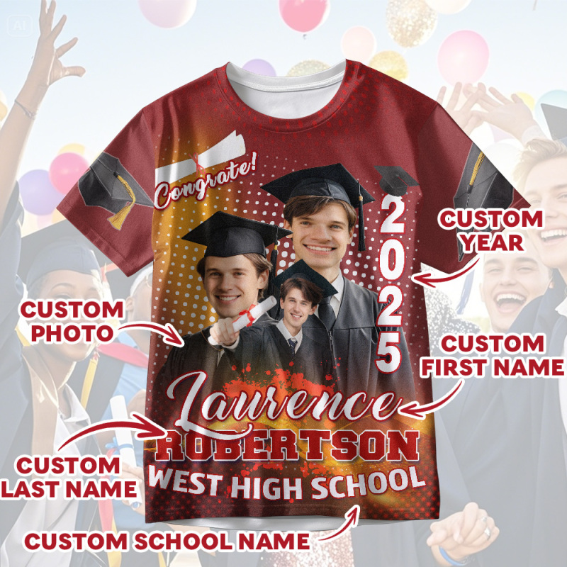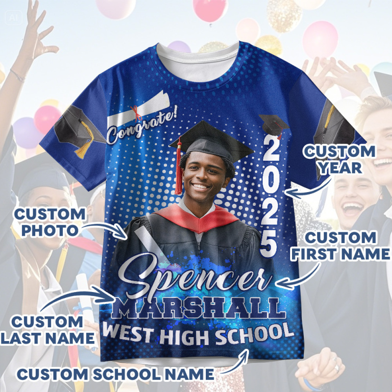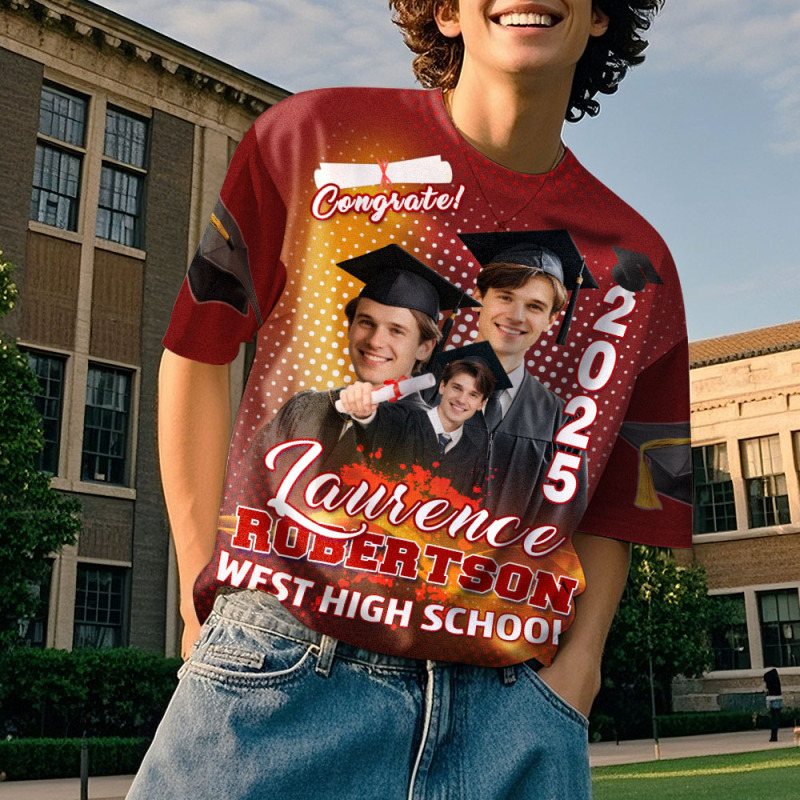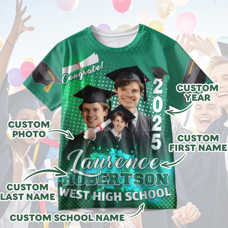 Custom 3D Graduation T-shirt Personalized Photo & Name T-shirt Congratulate Gift