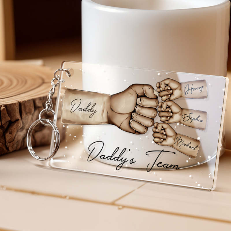 Custom Acrylic Keychain Personalized Daddy's Team Fist Bump Father's Day Gifts