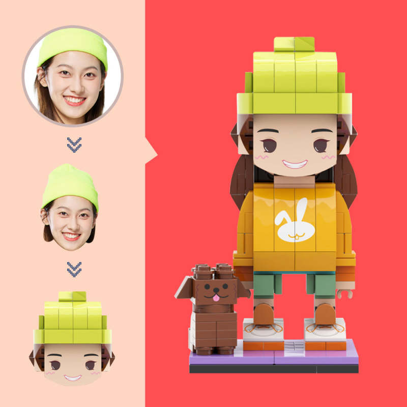 Custom Brick Figure with A Little Dog Custom Head Figures Small Particle Block Toy Customizable Brick Art Gifts