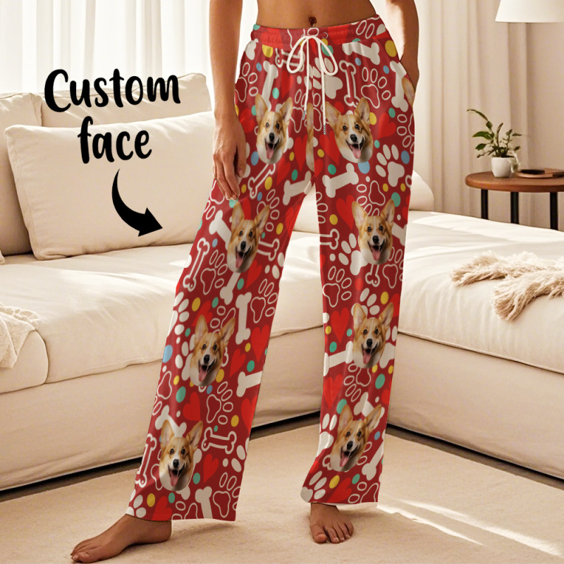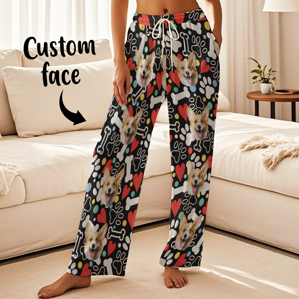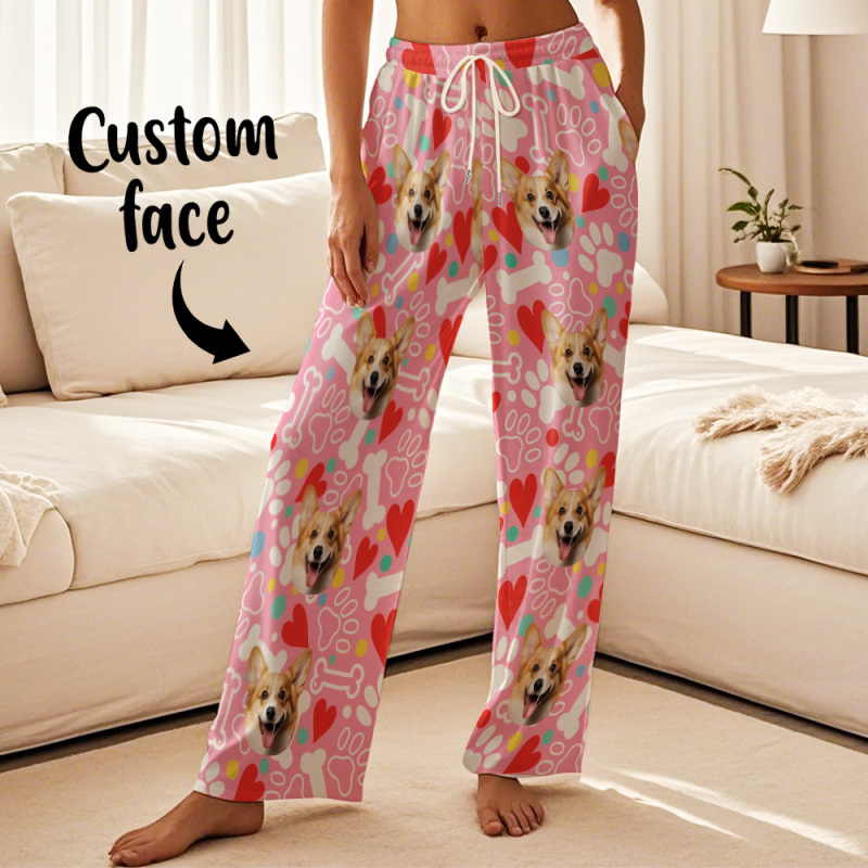 Custom Dog Face Pajamas Pants Personalized Photo Bottoms Pet Cat Heart Printed Pajamas