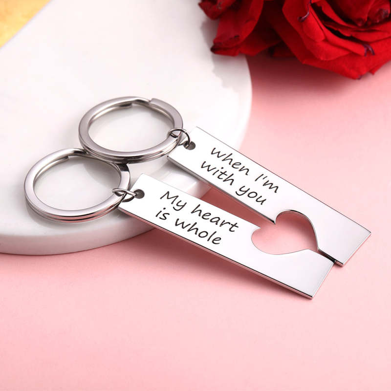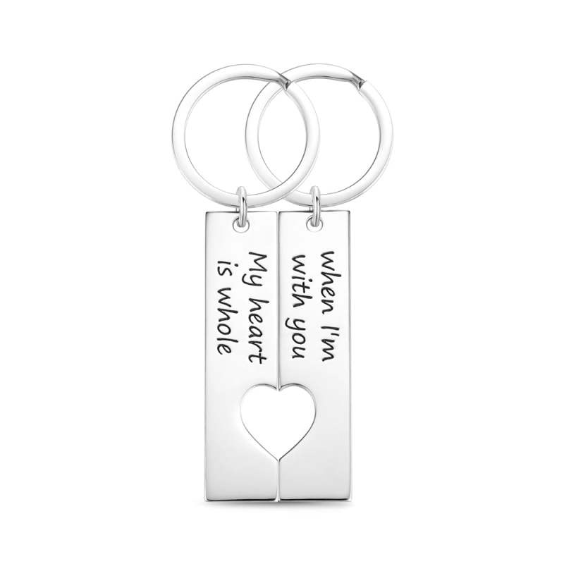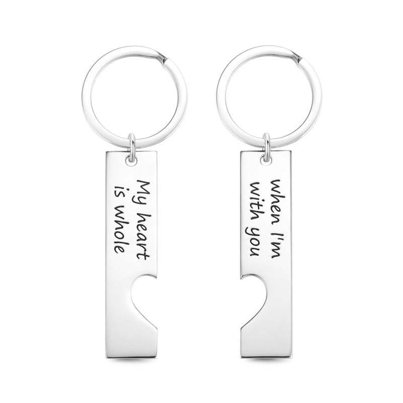 Custom Engraved Couple Vertical Bar Keychain SetValentine's Day