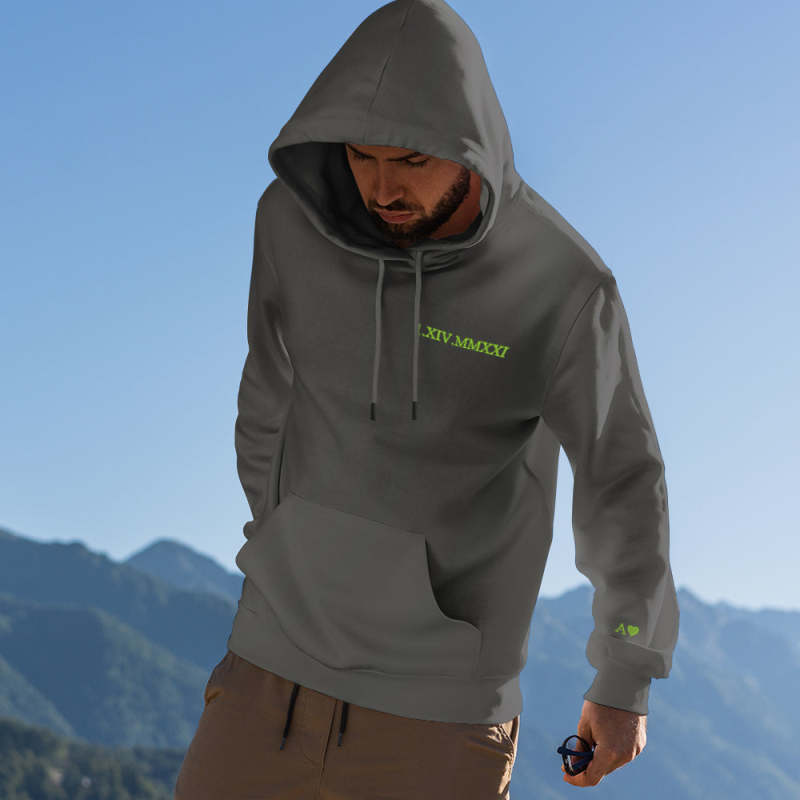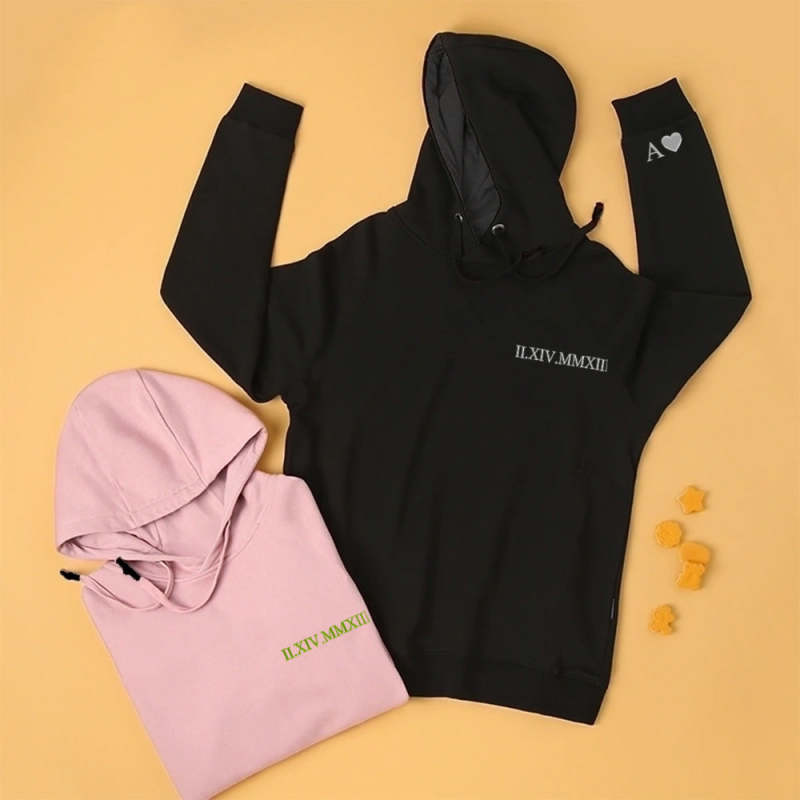 Custom Engraved Hooded Embroidery Round Neck Roman Numeral Date Couple Gifts