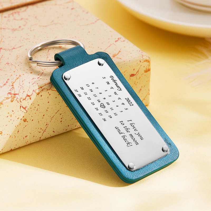 Custom Engraved Leather Calendar Keychain Custom Date Anniversary Calendar Anniversary Gift