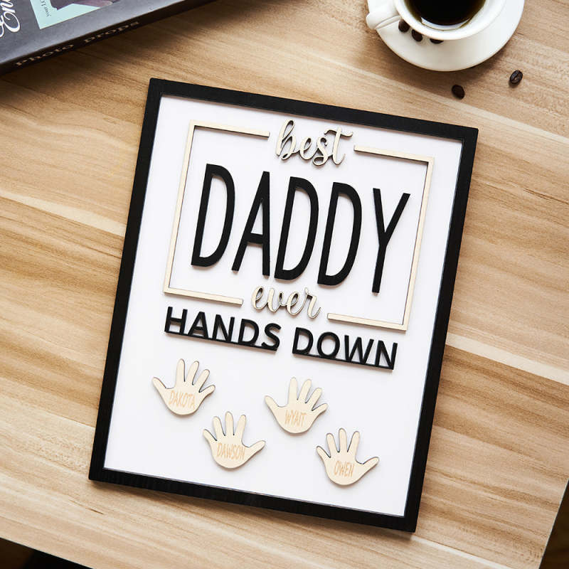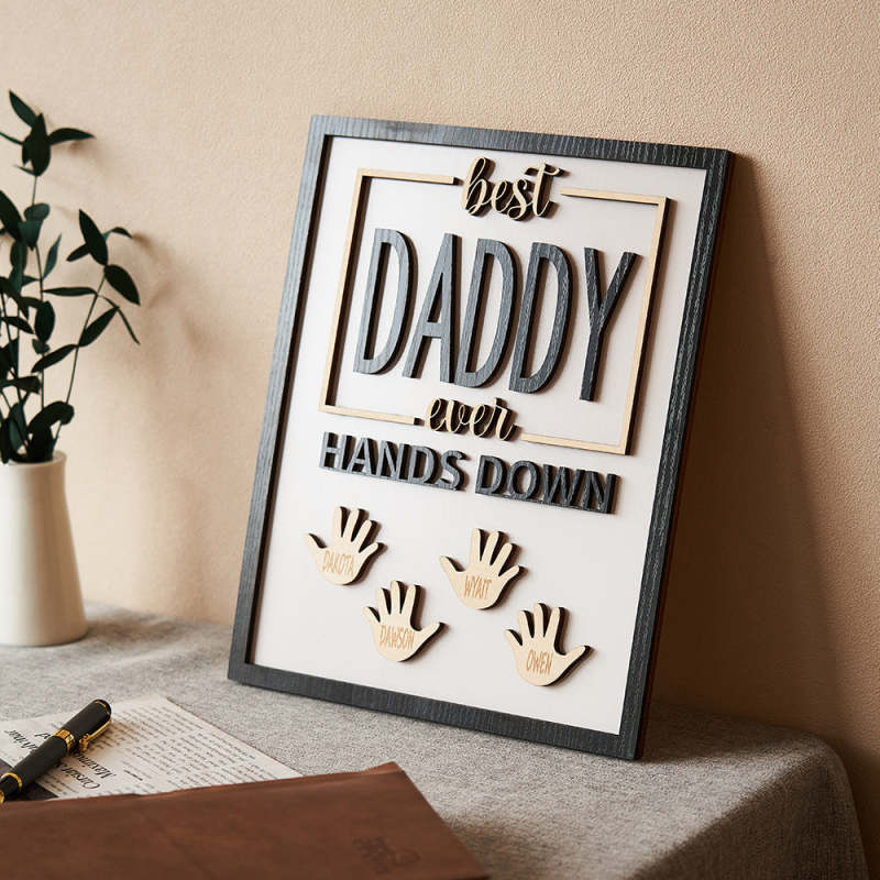 Custom Engraved Ornament Daddy Hands Down Handprint Sign Frame Gifts for Dad