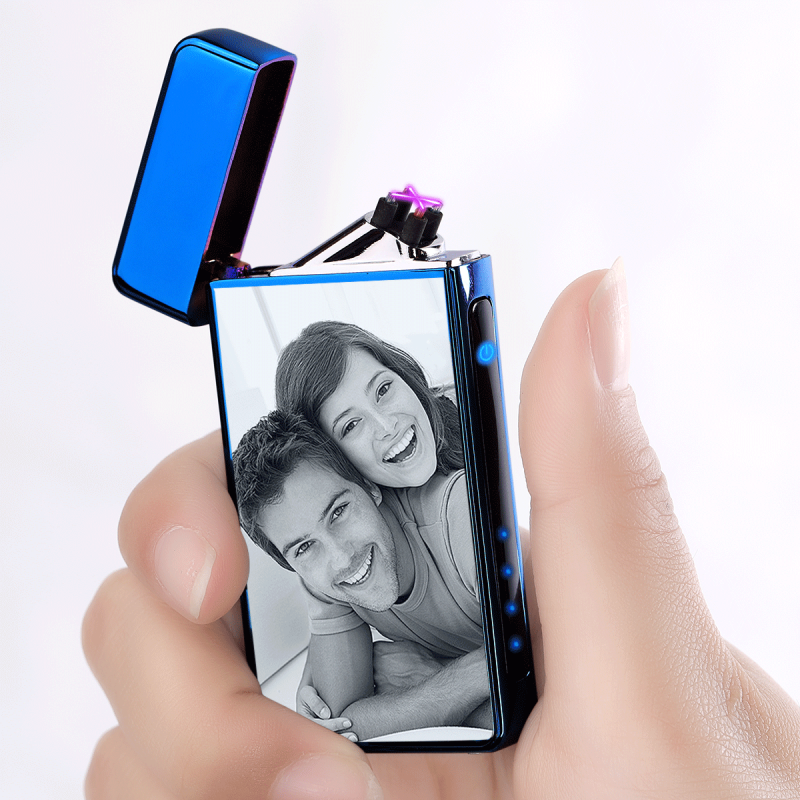 Custom Photo Engraved Lighter | Electronic Cigarette Lighter | Blue