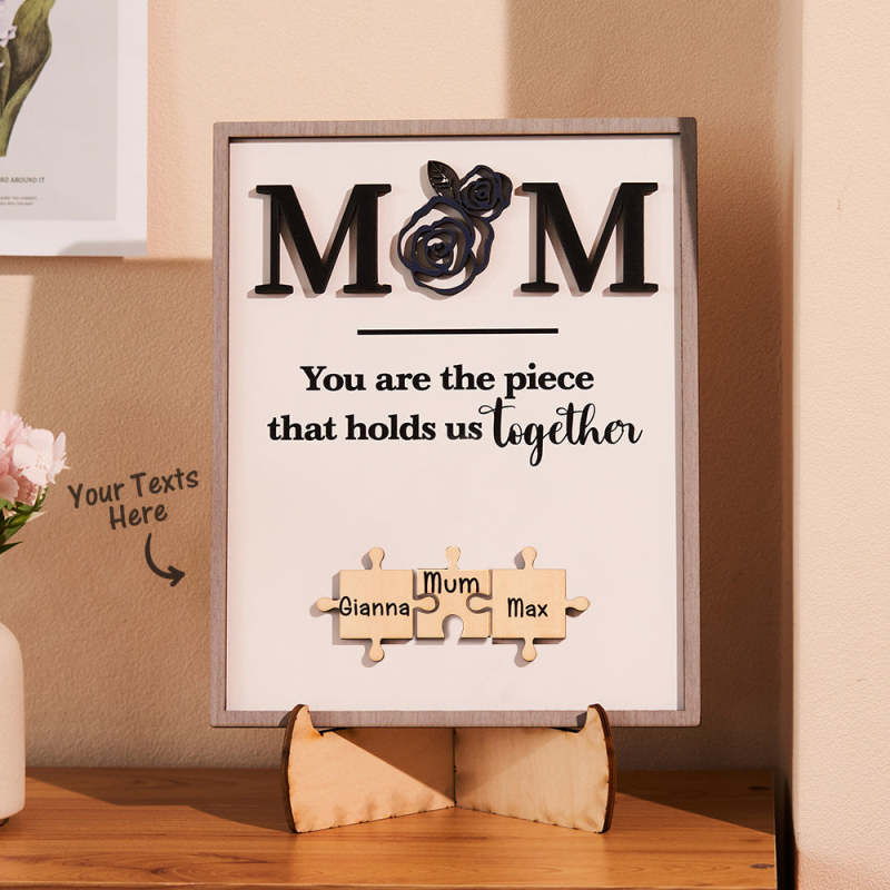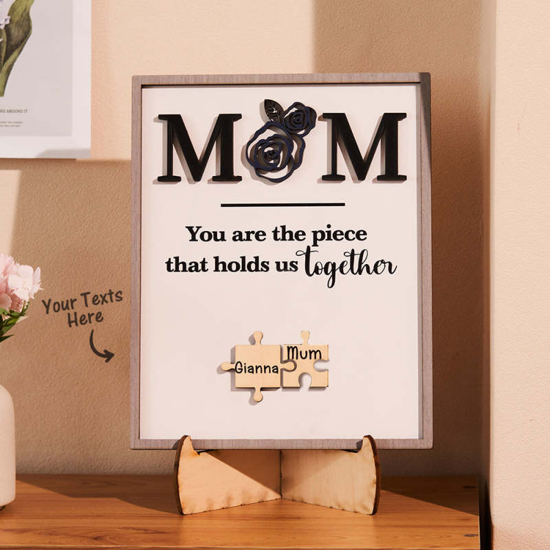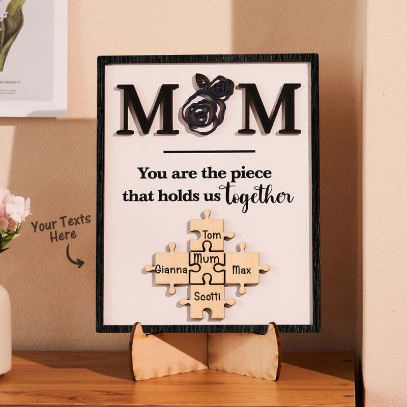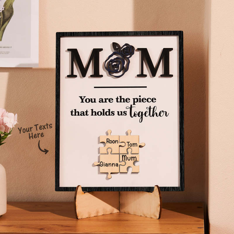 Custom Engraved Puzzle Ornament Rose Design Commemorate Gifts for Mom