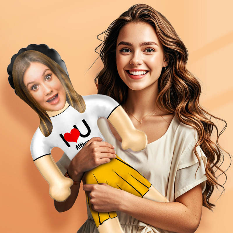"I lOVE U" Custom Face & Text Air Minime Doll Personalized Blow Up Doll Inflatable Minime Balloon for CoupleValentine's Day