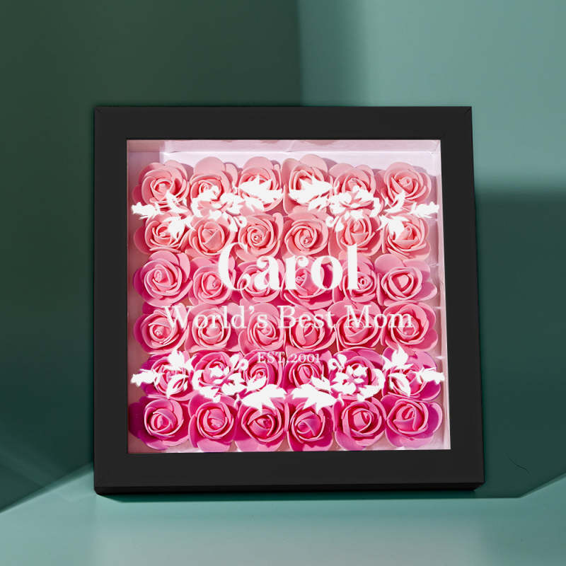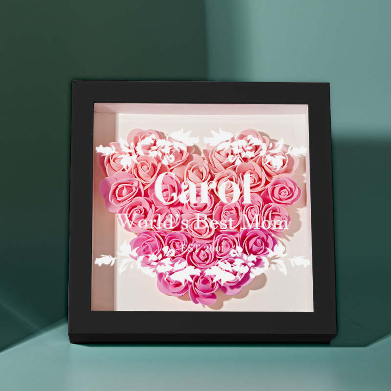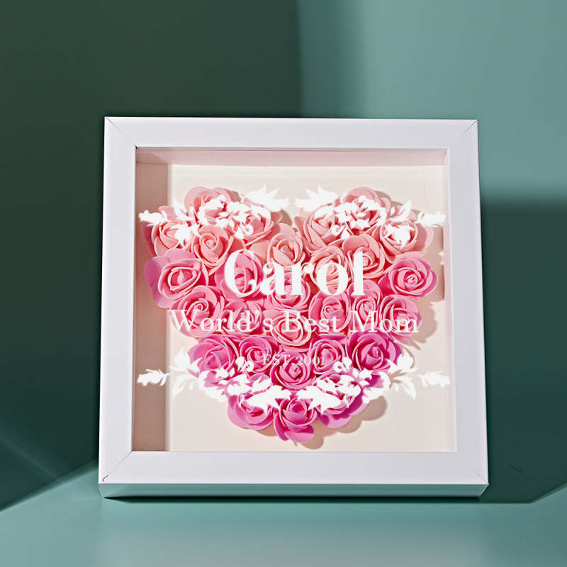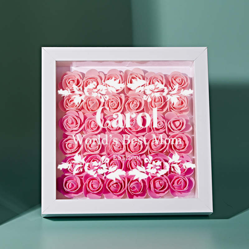 Custom Flower Shadow Box Personalized Gradient Pink Flower Shadowbox Frame Gift for Mom