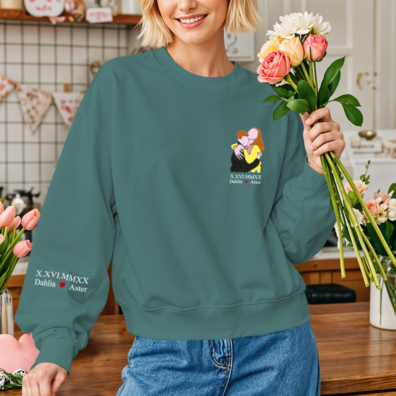 Custom Full Color Embroidered Sweatshirt Portrait Couple/Dad/Mom - Family Gift