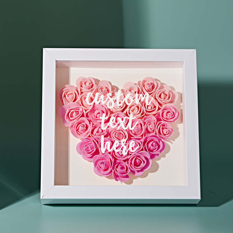 Custom Gradient Pink Flower Shadow Box Personalized Flower Shadowbox Frame Gift for Mom