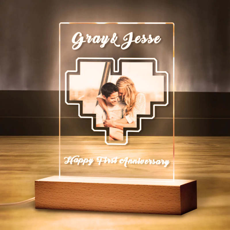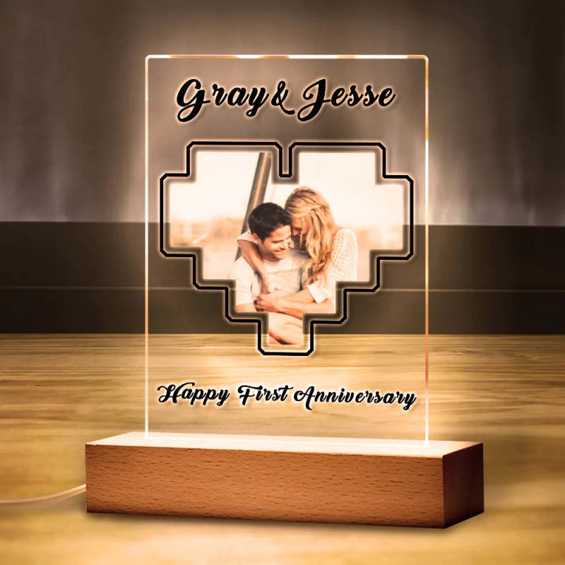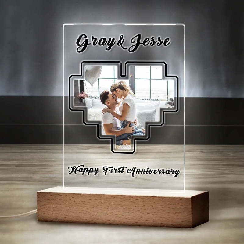 Custom Puzzle Heart Photo Plaque Acrylic Keychain With Text Anniversary Gift