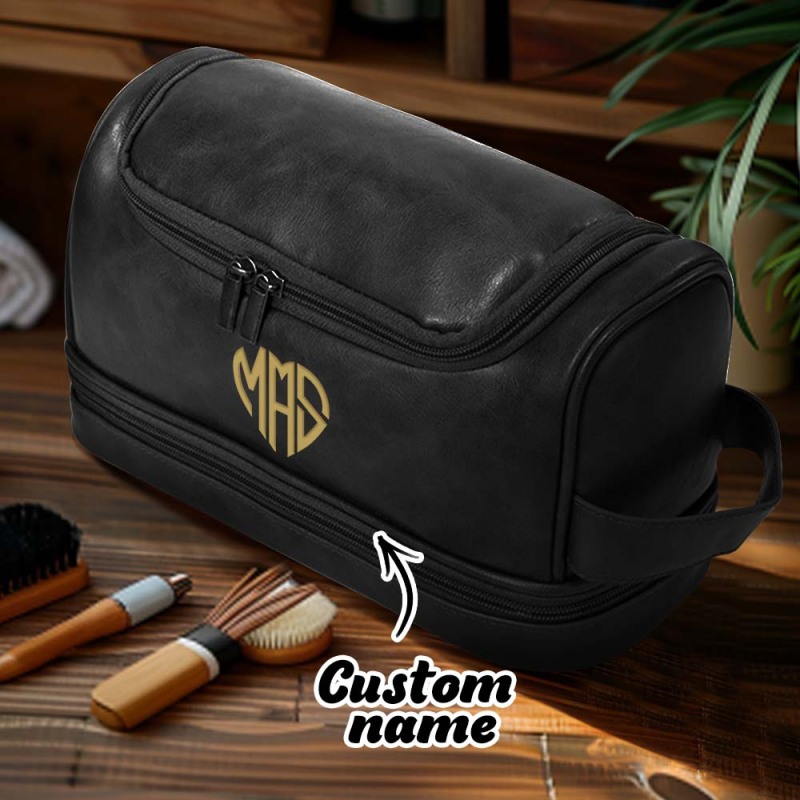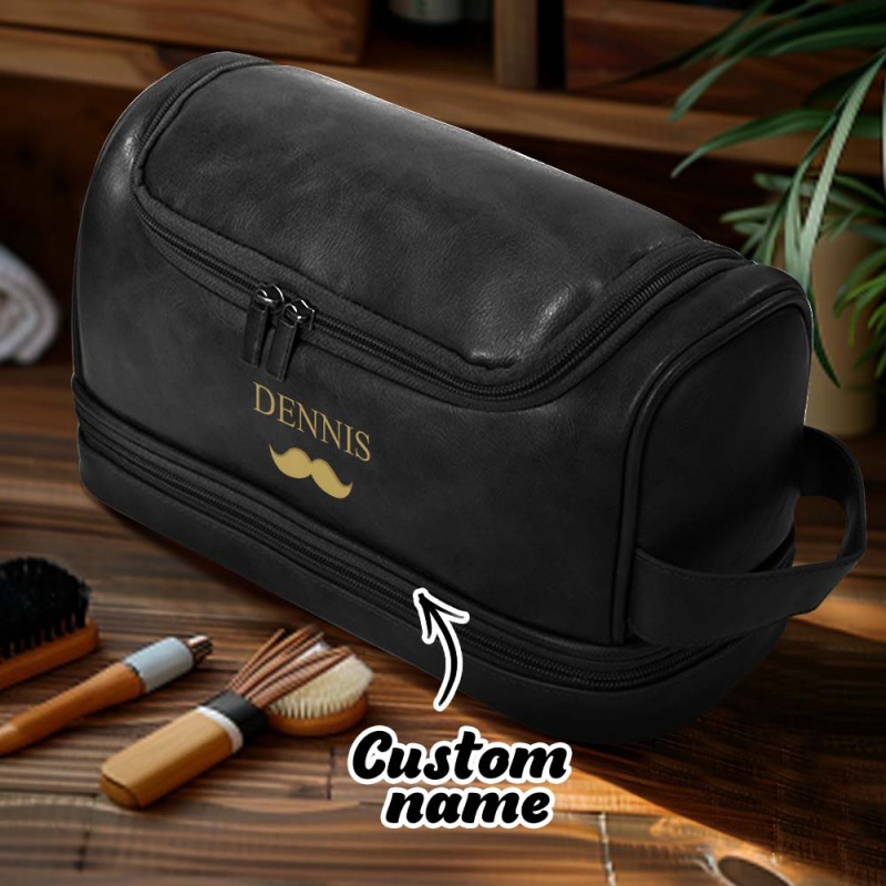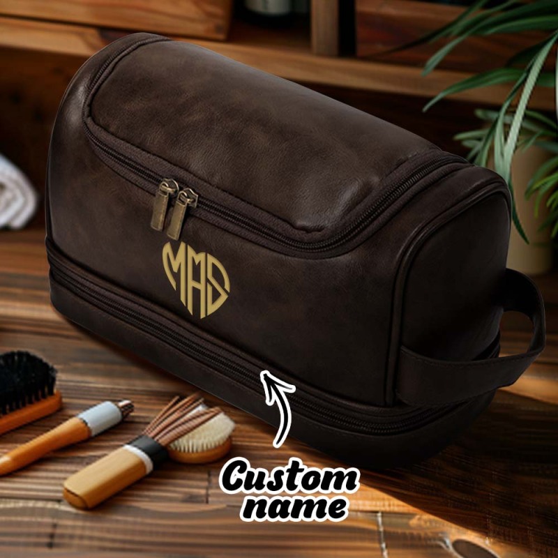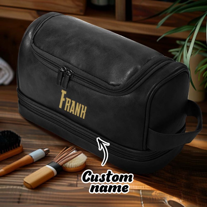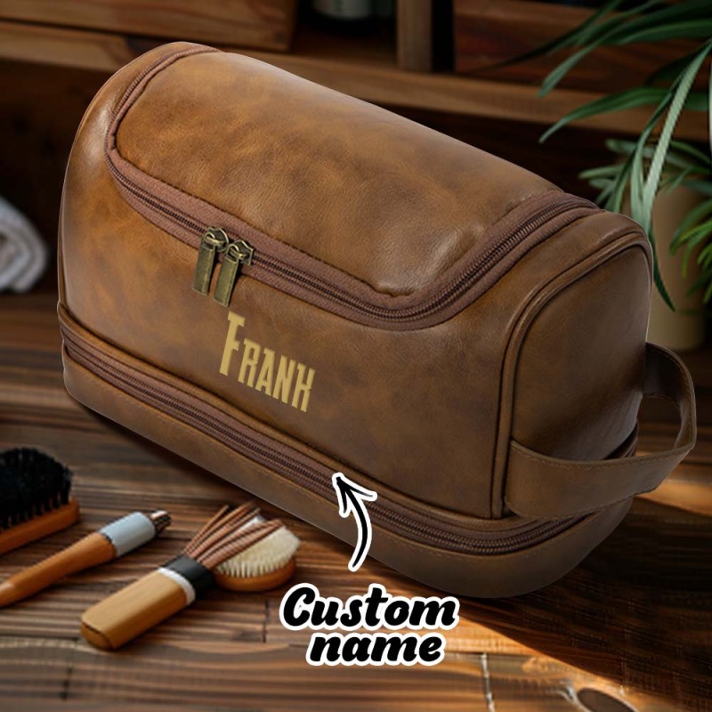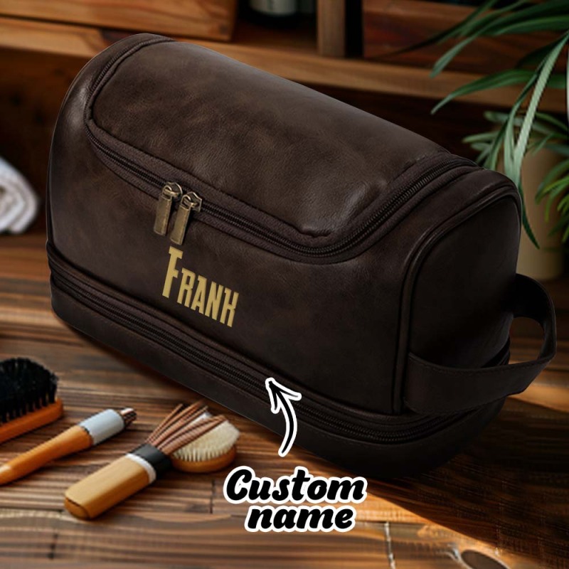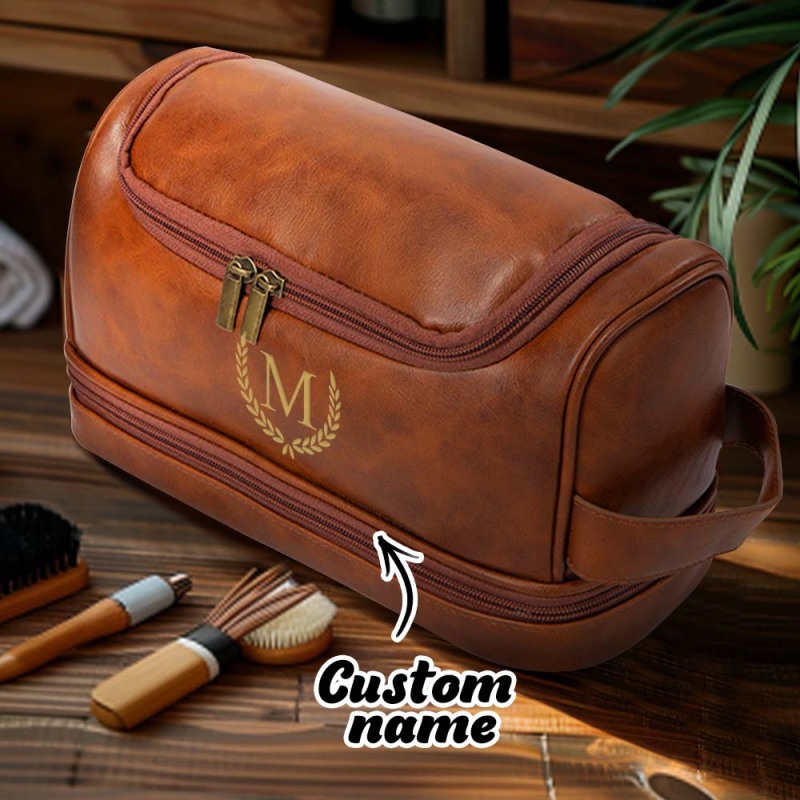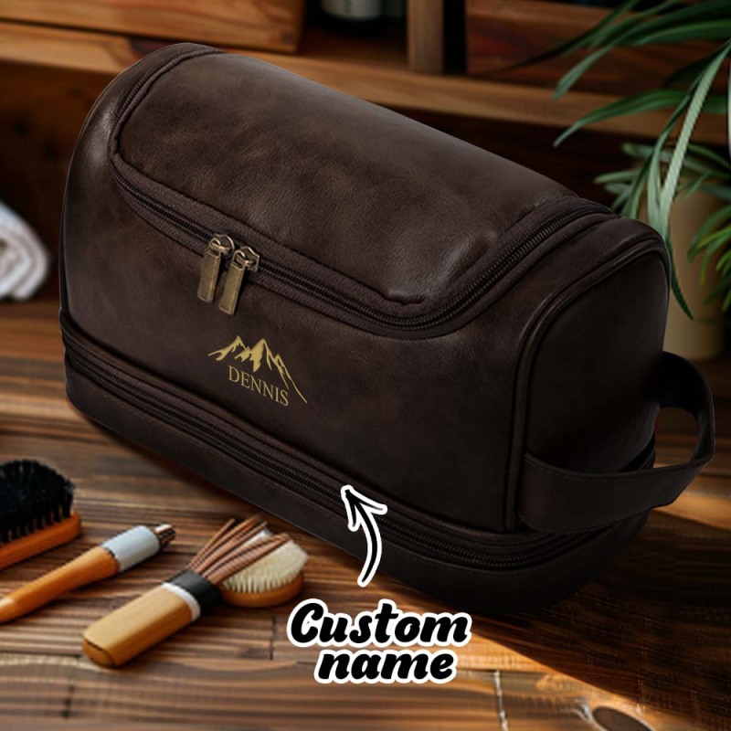 Custom Men's Leather Toiletry Bag Personalized Name Unique Gift for Dad