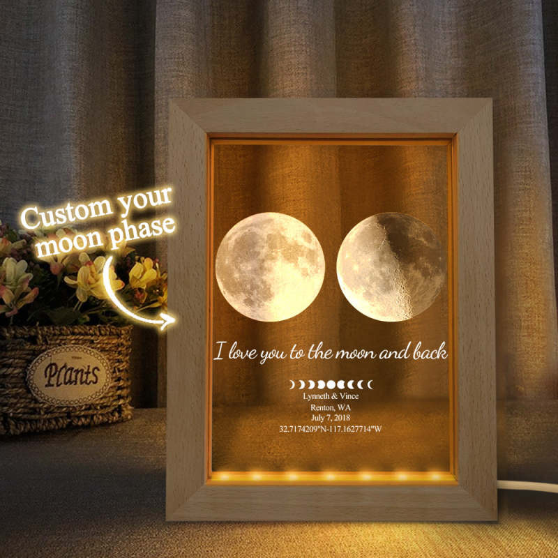 Custom Moon Phase Night Light Personalized Moon Phase Wooden Frame Light GiftValentine's Day