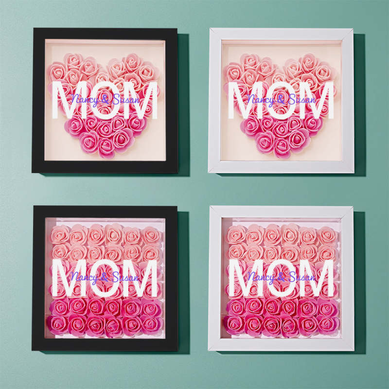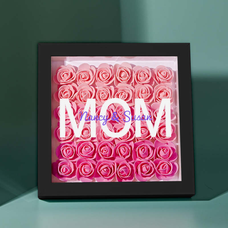 Custom Name Flower Shadow Box Personalized Gradient Pink Flower Shadowbox Frame Gift for Mom