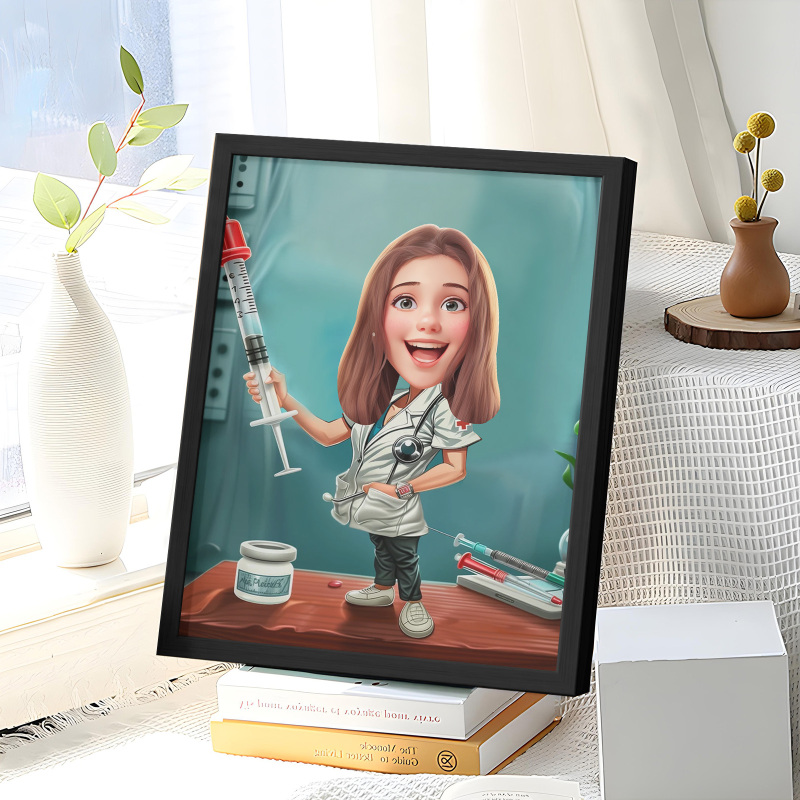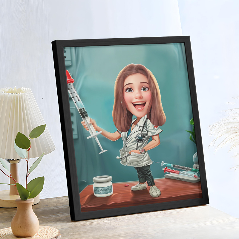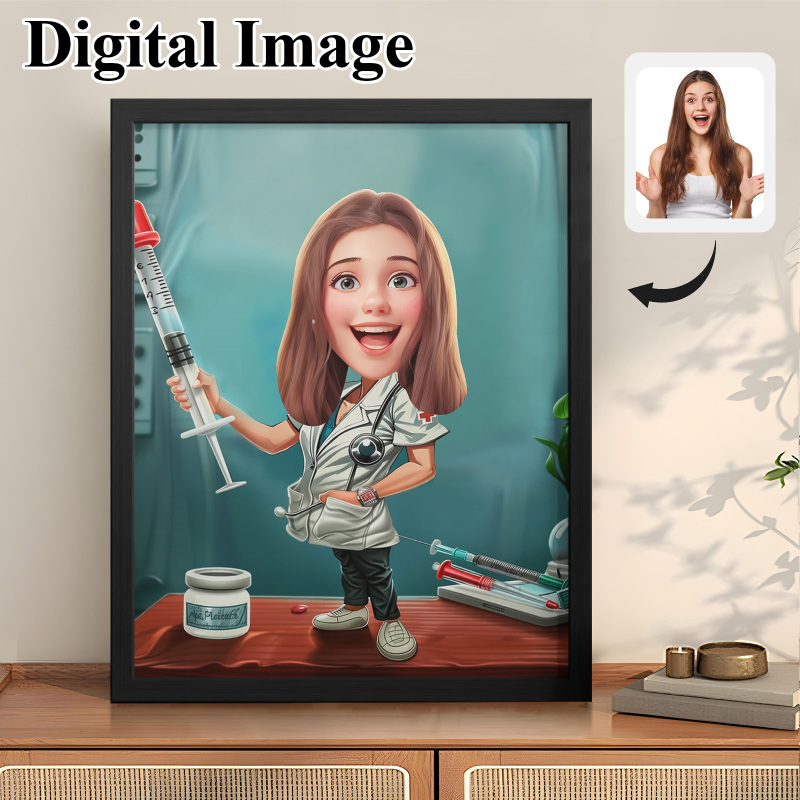 Custom Nurse Caricature Portrait - From Your Photo, Unique Gift for Nurses, Cartoon Style, Digital Download