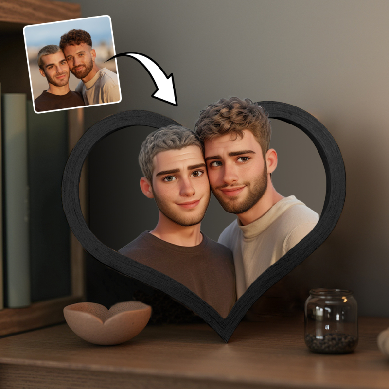 Custom Personalized Cartoon Style Photo Heart-Shaped 3D Frame