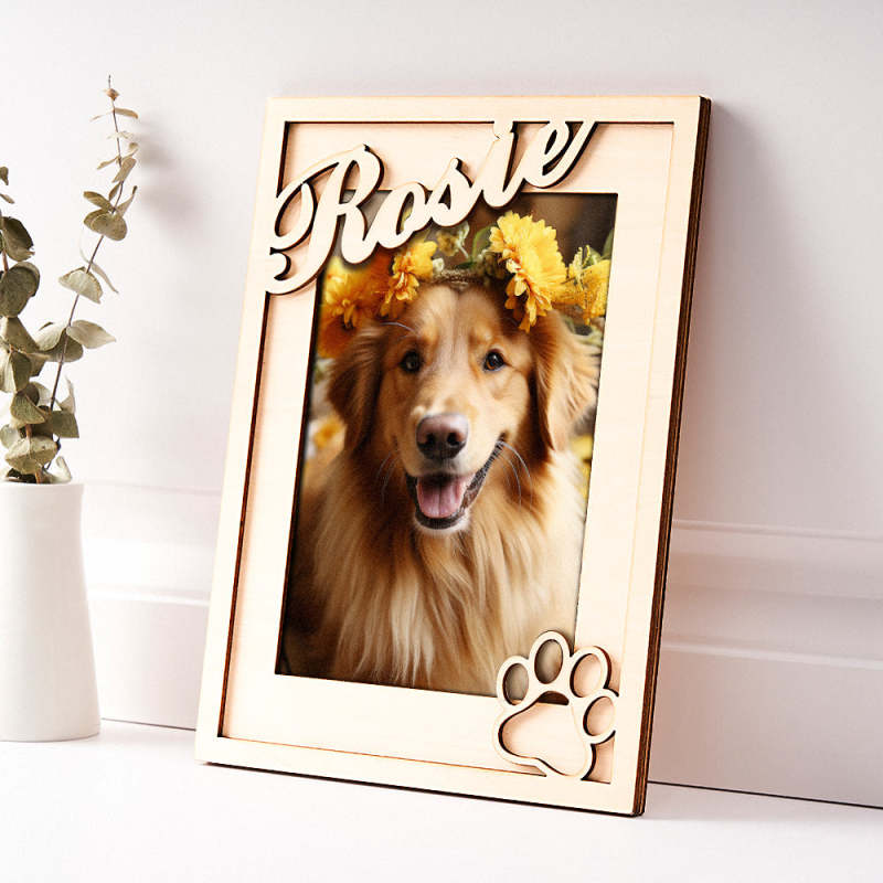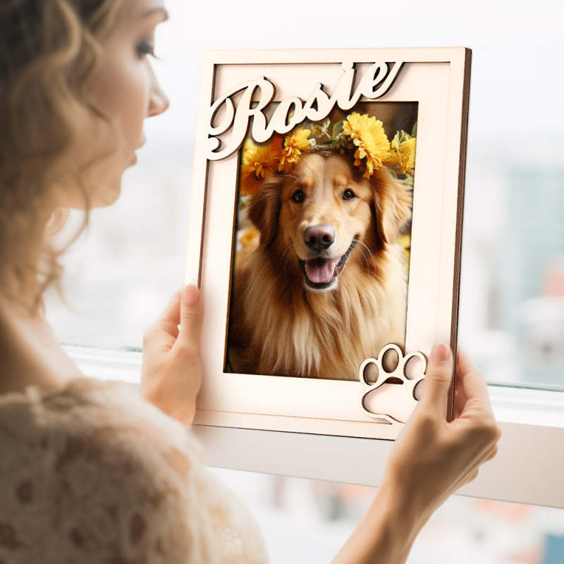 Custom Pet Photo Frame with Personalized Name Wooden Plaque