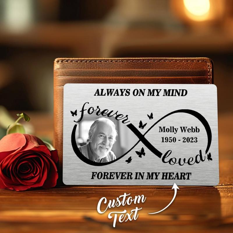 Custom Photo Always On My Mind Forever In My Heart - Memorial Personalized Custom Aluminum Wallet Card