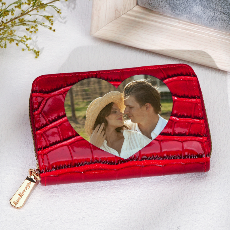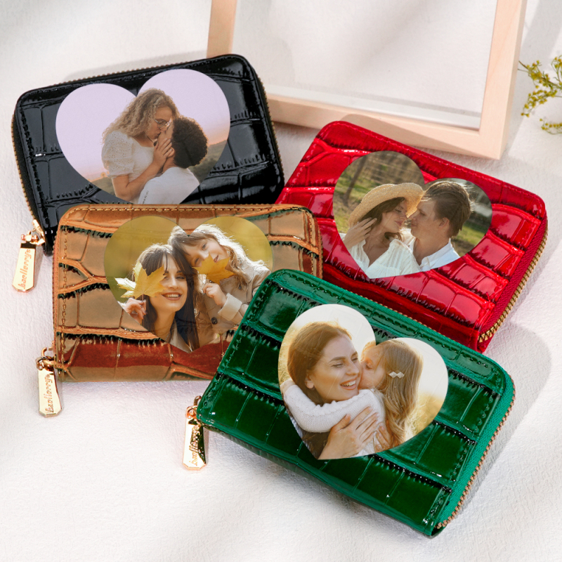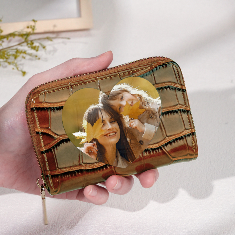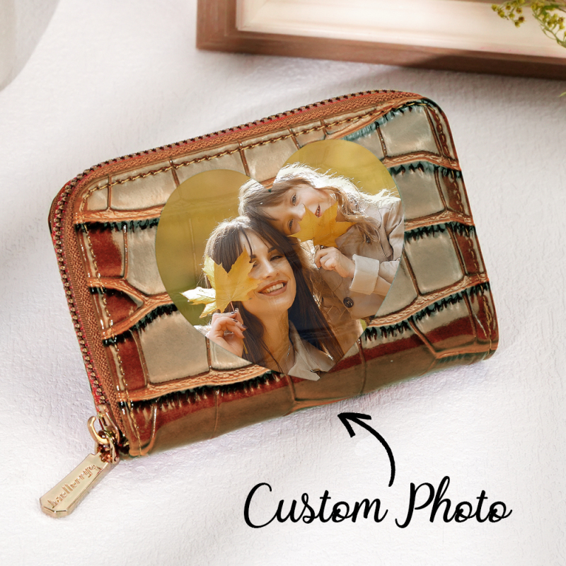 Gifts for Women and Coworkers Custom Photo Crocodile Pattern Fashion Multi-Card Wallet, Short Wallet, Valentine's Day, Mother's Day, Birthday Gift For CouplesValentine's Day