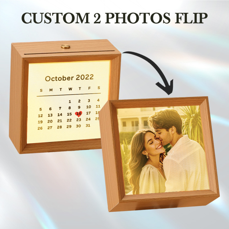Custom Photo Engraved Calendar Lenticular Photo Lamp 2 in 1 Valentine's Day