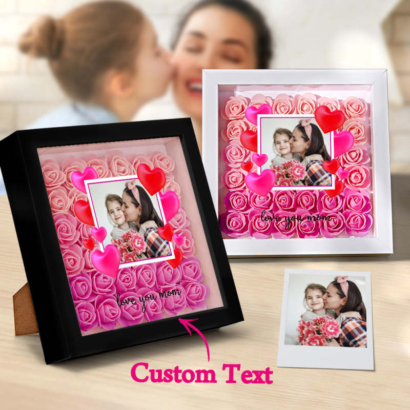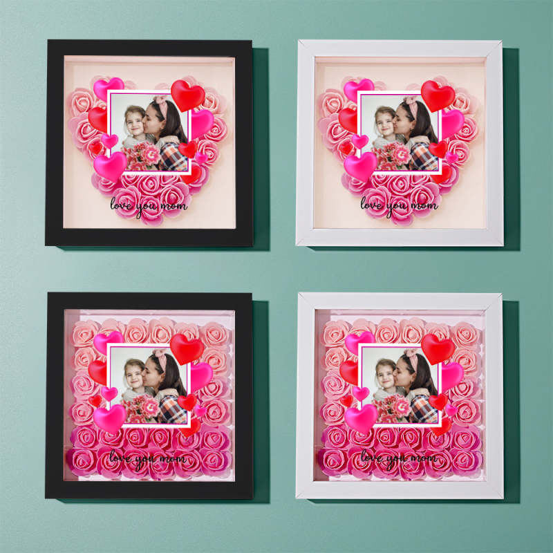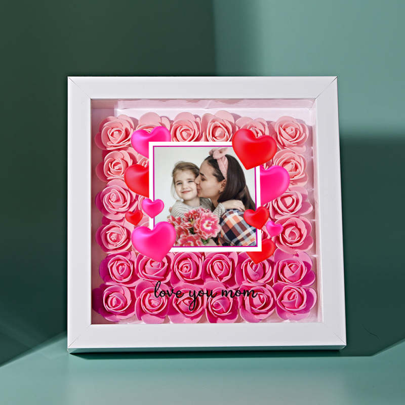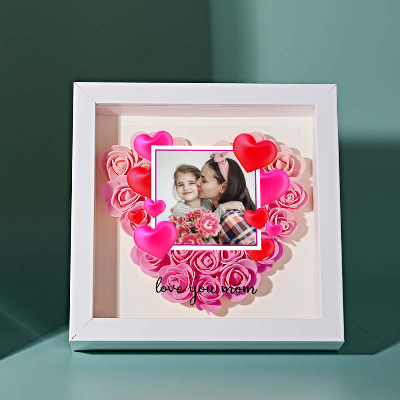 Custom Photo Flower Shadow Box Personalized Gradient Pink Flower Shadowbox Frame Gift for Mom