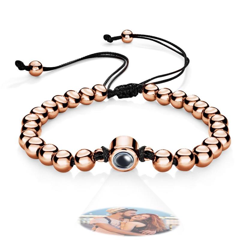 Custom Photo Projection Bracelet Personalized Circle Beads Adjustable Bracelet Gifts For Men