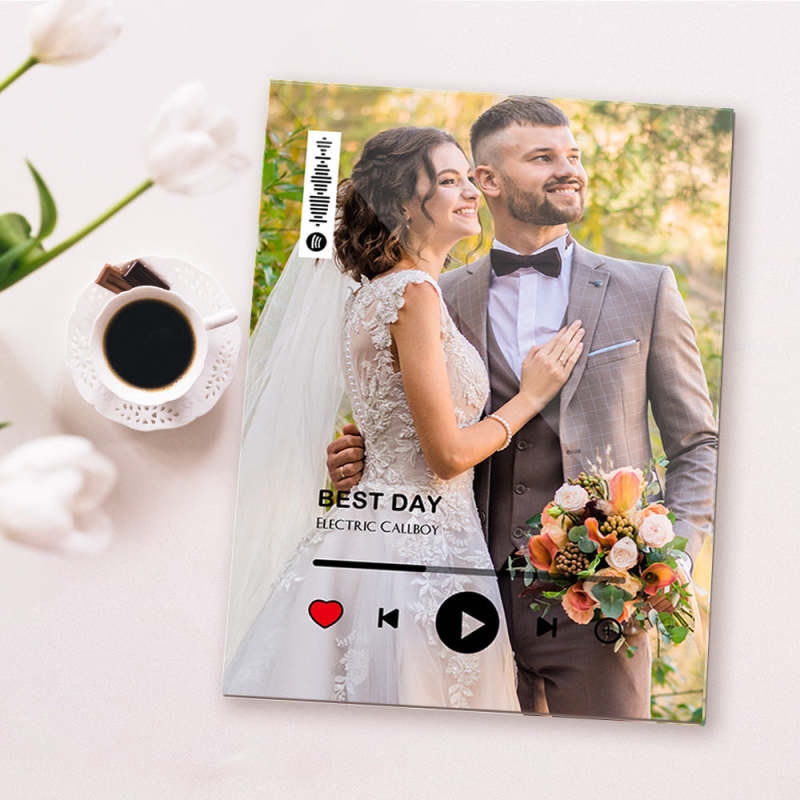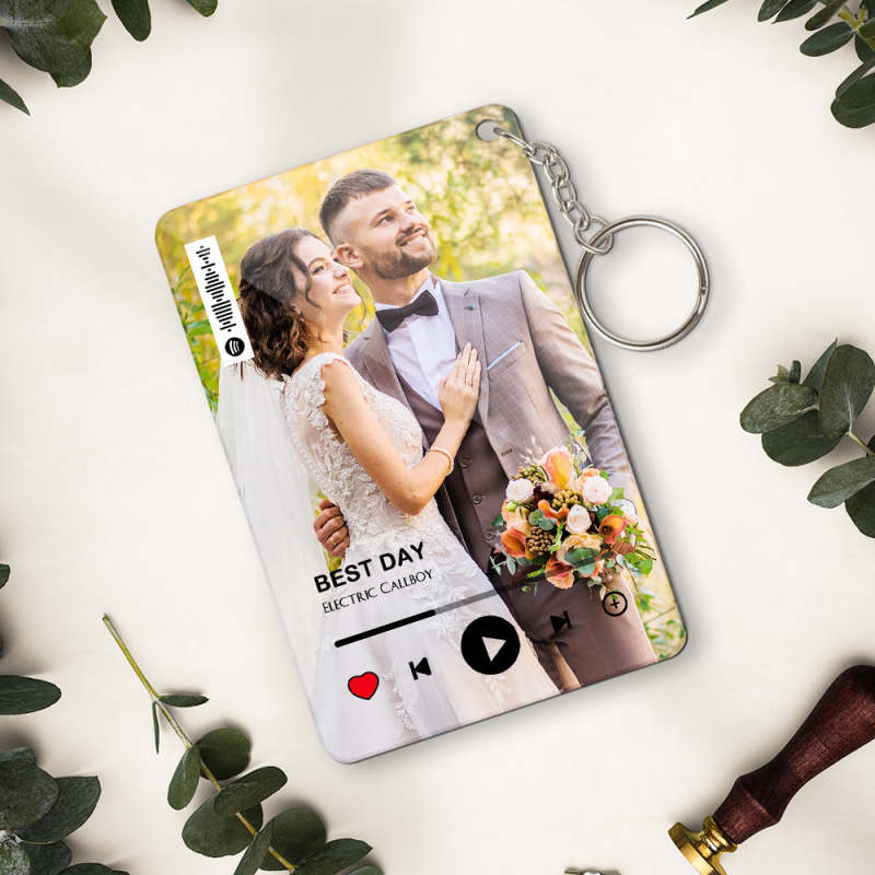 Custom Photo Spotify Plaque Music Keychain Personalized Album Cover Couples GiftValentine's Day