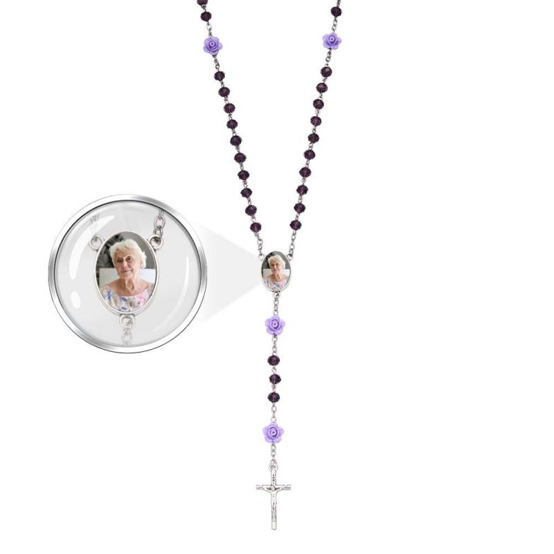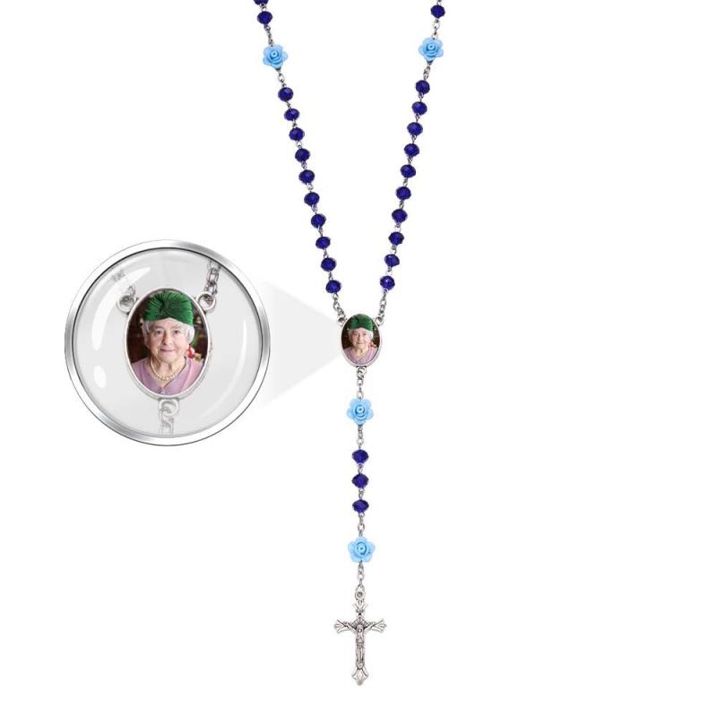 Sentimental Memorial Gifts for Catholics Custom Rosary Beads Cross Necklace Personalized Rose Crystal Necklace with Photo