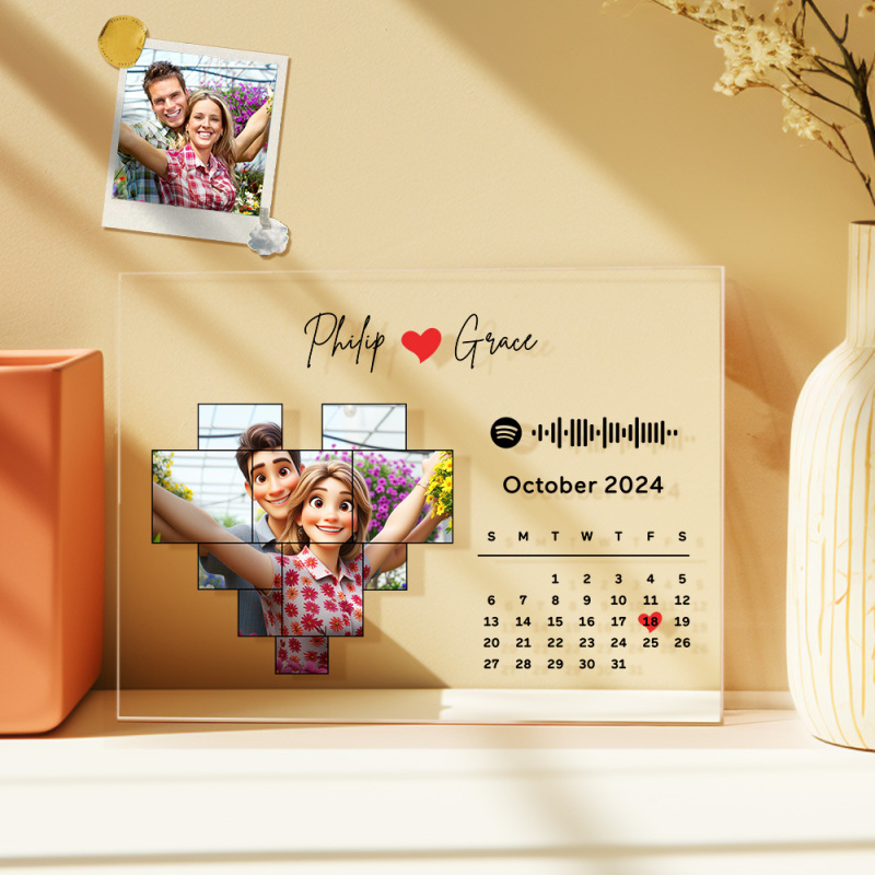 Birthday Gifts for Her Custom Spotify Acrylic Plaque Spotify Code Song Decoration Cartoon Photo CoupleValentine's Day