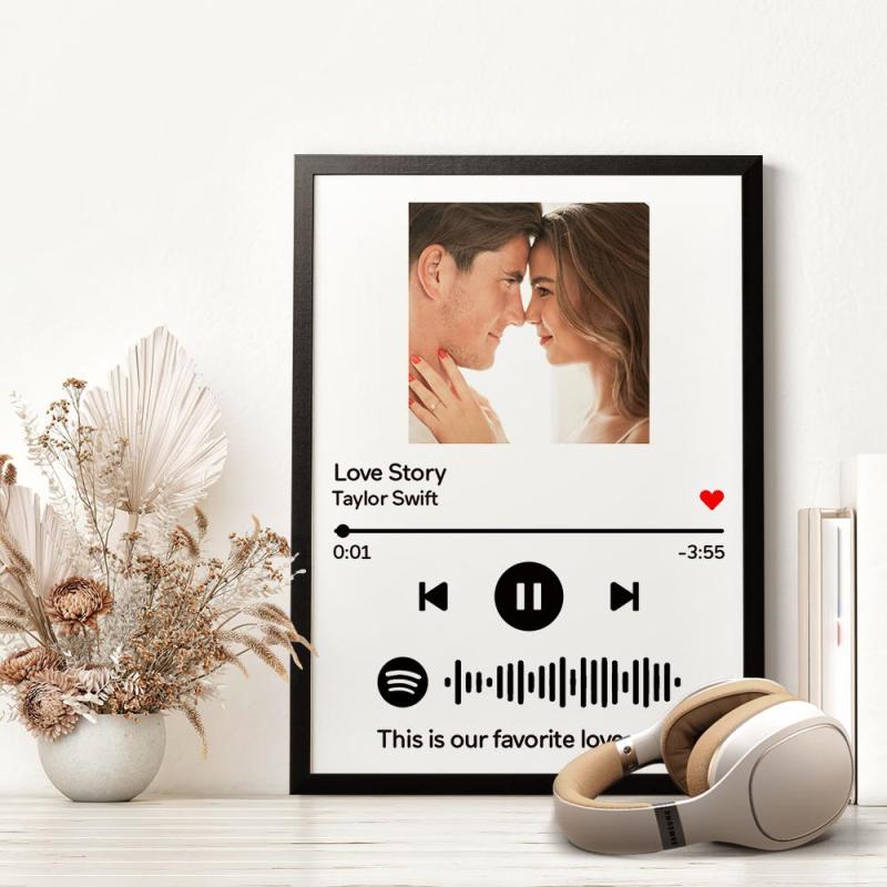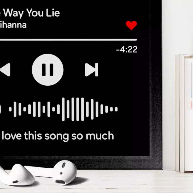 Custom Spotify Code Music Wood Frame Painting With Text-Black