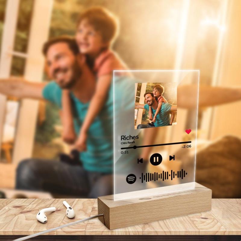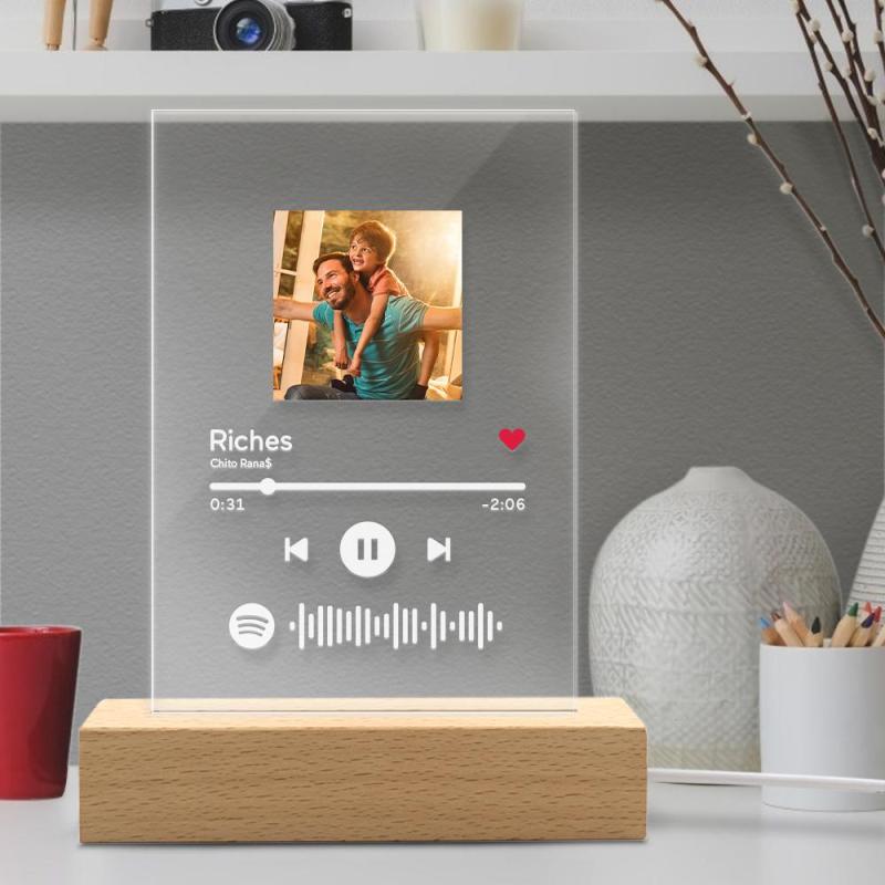 Father's Day Gifts Custom Spotify Code Glass Art Music Night Light For Dad Gift For Him