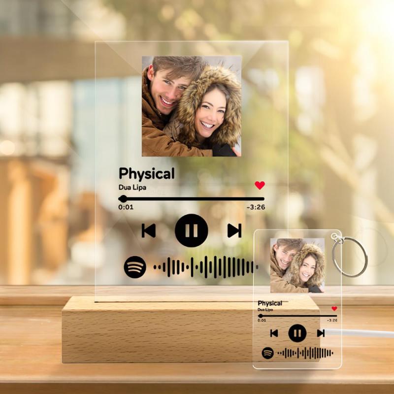 Custom Spotify Code Acrylic Couple Photo Night Light and Keychain SetValentine's Day