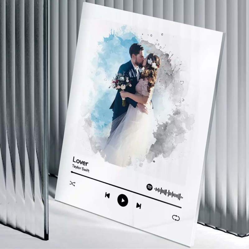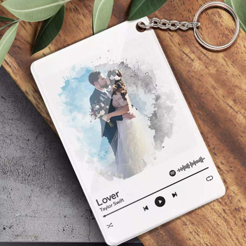Custom Spotify Glass Code Oil Painting Style Couple Keychain/Plaque/Night Light GiftValentine's Day