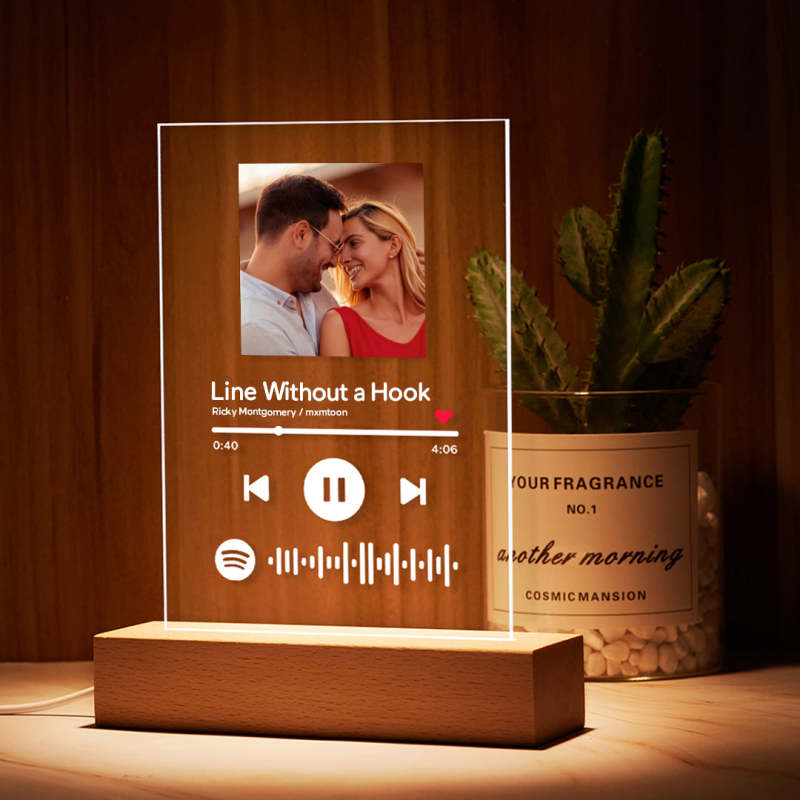 Custom Spotify Glass Christmas Gifts Night Light Art Glass Music Photo Night Light