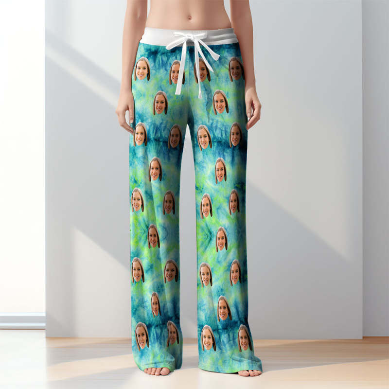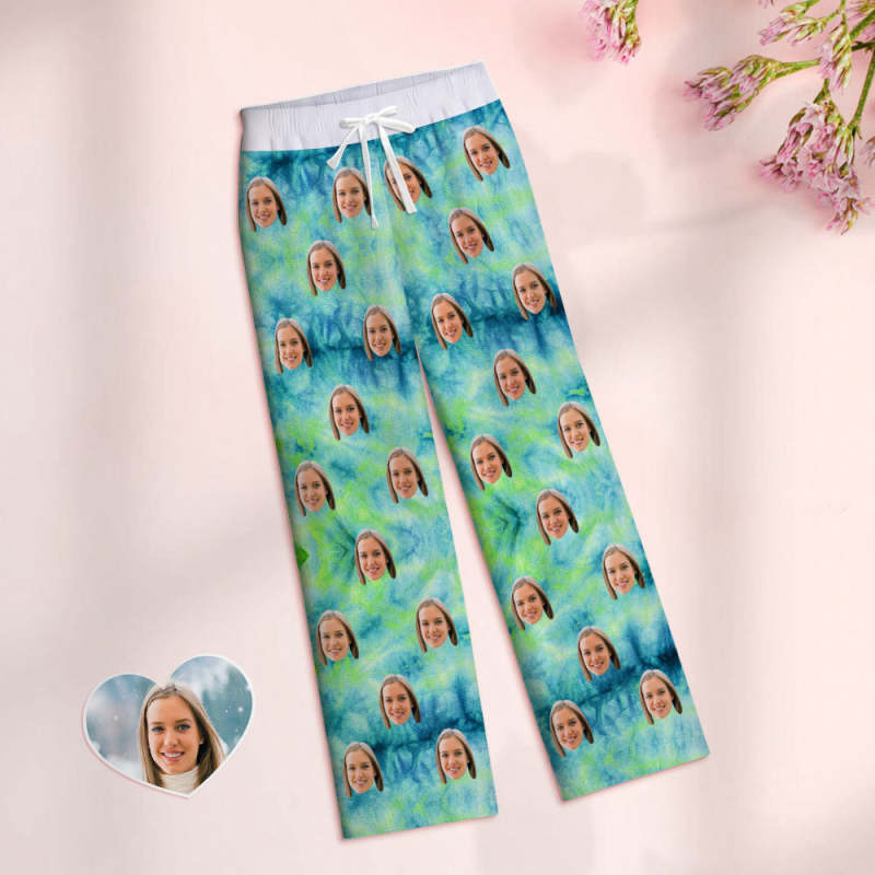 Custom Women Tie-dye Pajamas Green Pajamas Pants