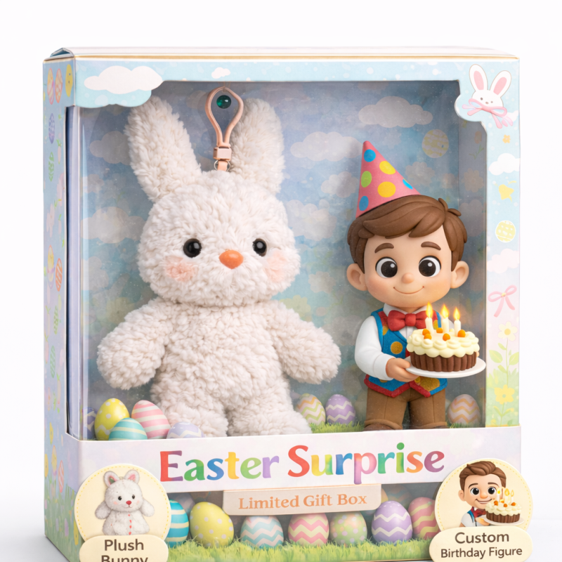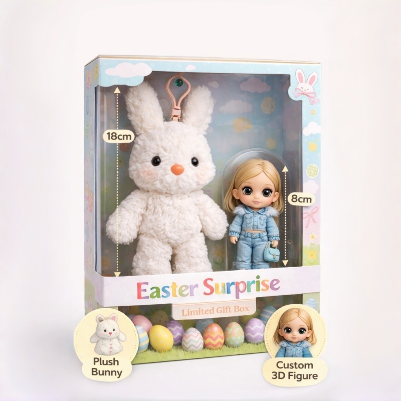 Easter Surprise Gift Box Custom 3D Figure+Plush Bunny Personalized Easter Gift Set