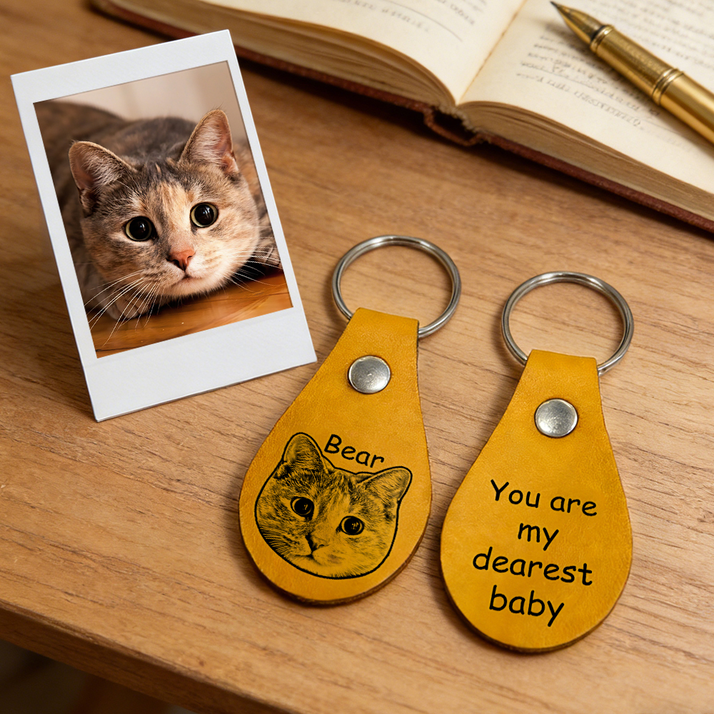 Engraved Pet Portrait Keyring: Custom Faux Leather Dog Dad Dog Mum Gift