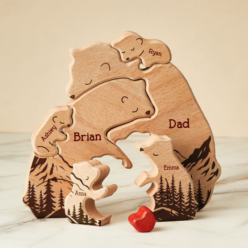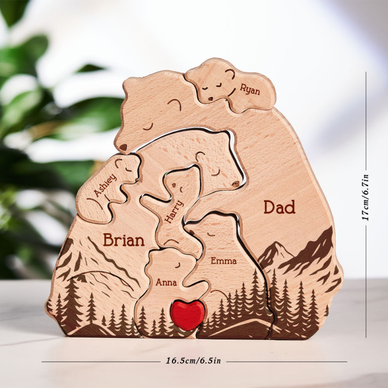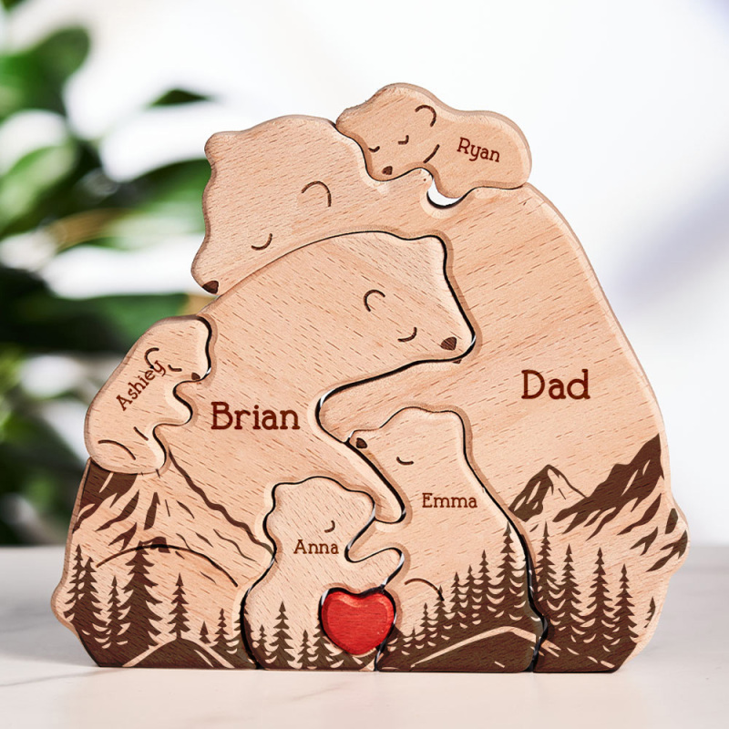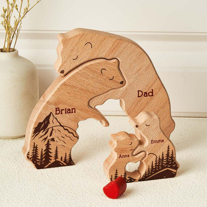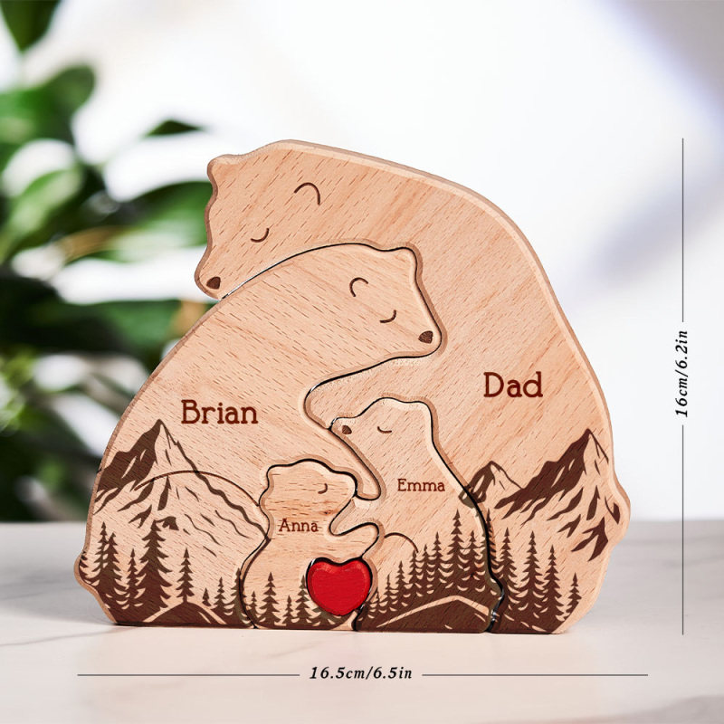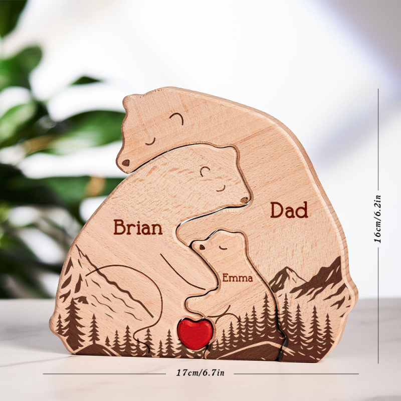 Gifts for Dad Hugging Bear Family - Personalized Wooden Bear Family Puzzle