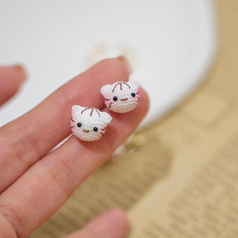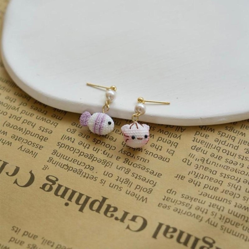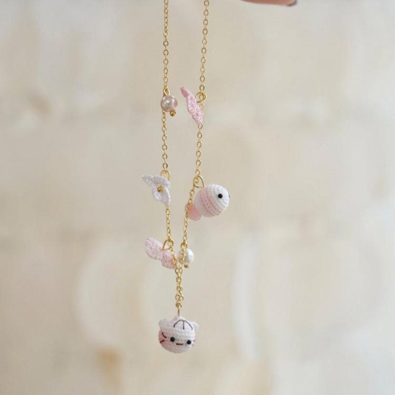 Handmade Crochet Cat and Fish Jewelry Earrings, Bracelet, Ring Unique Indie Lace Accessories
