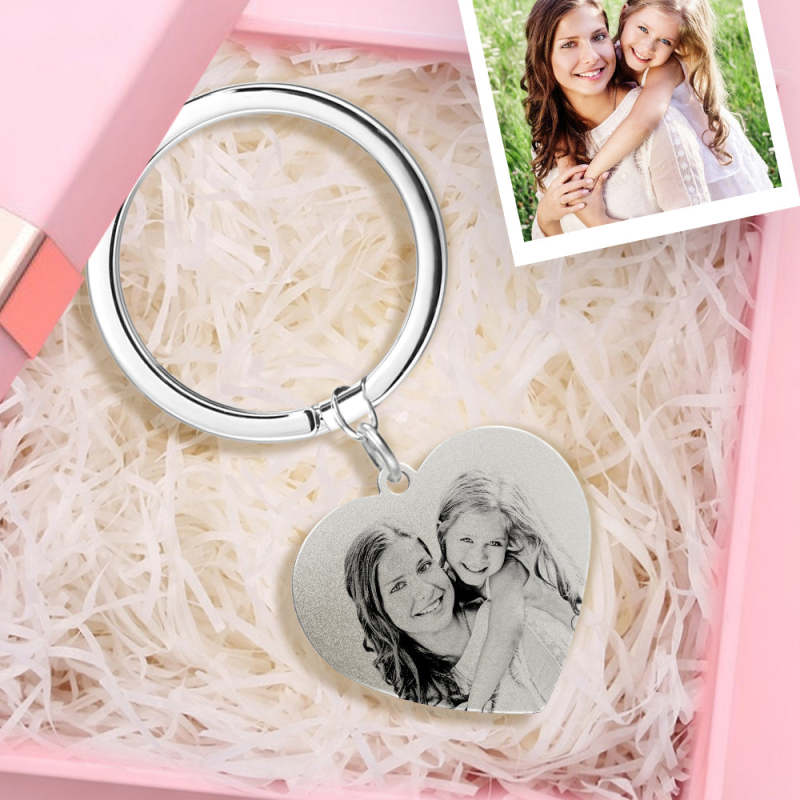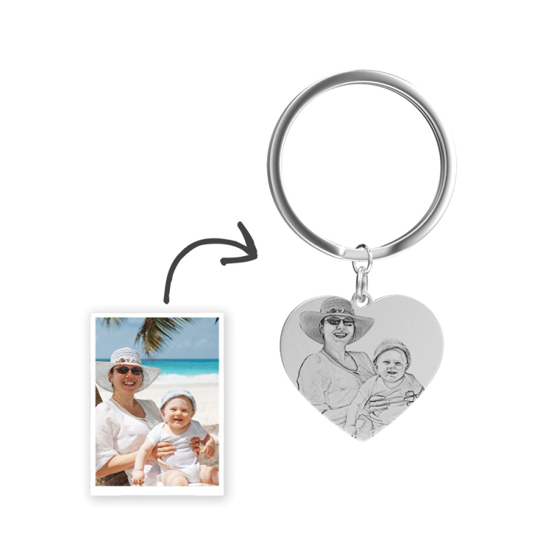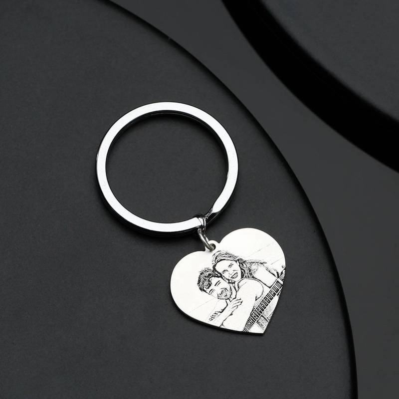 Custom Photo Keychain Stainless Steel - Heart Pendant