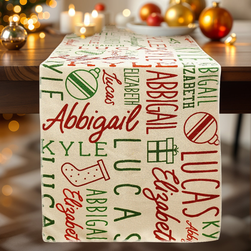 Holiday Repeating Name Personalized Christmas Table Runner- 16" x 60"