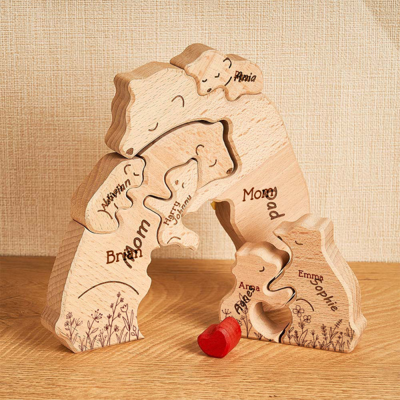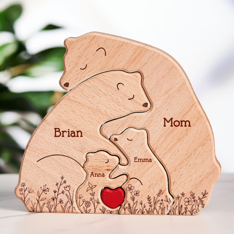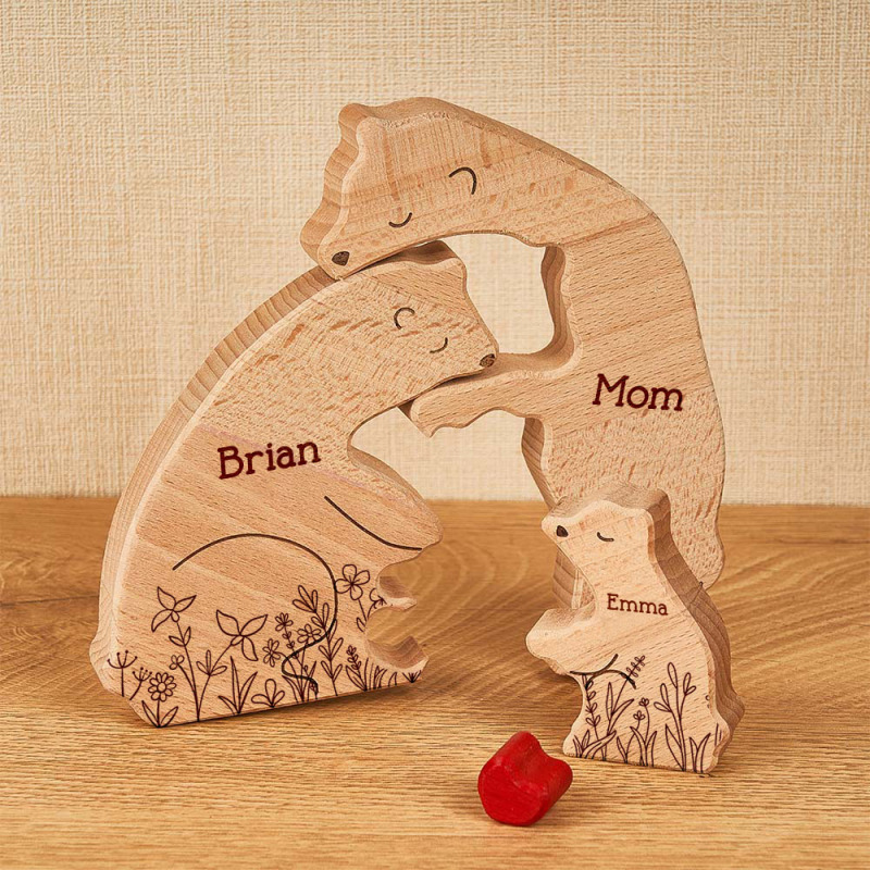 Hugging Bear Family Floral Version - Personalized Wooden Bear Family Puzzle for Mom