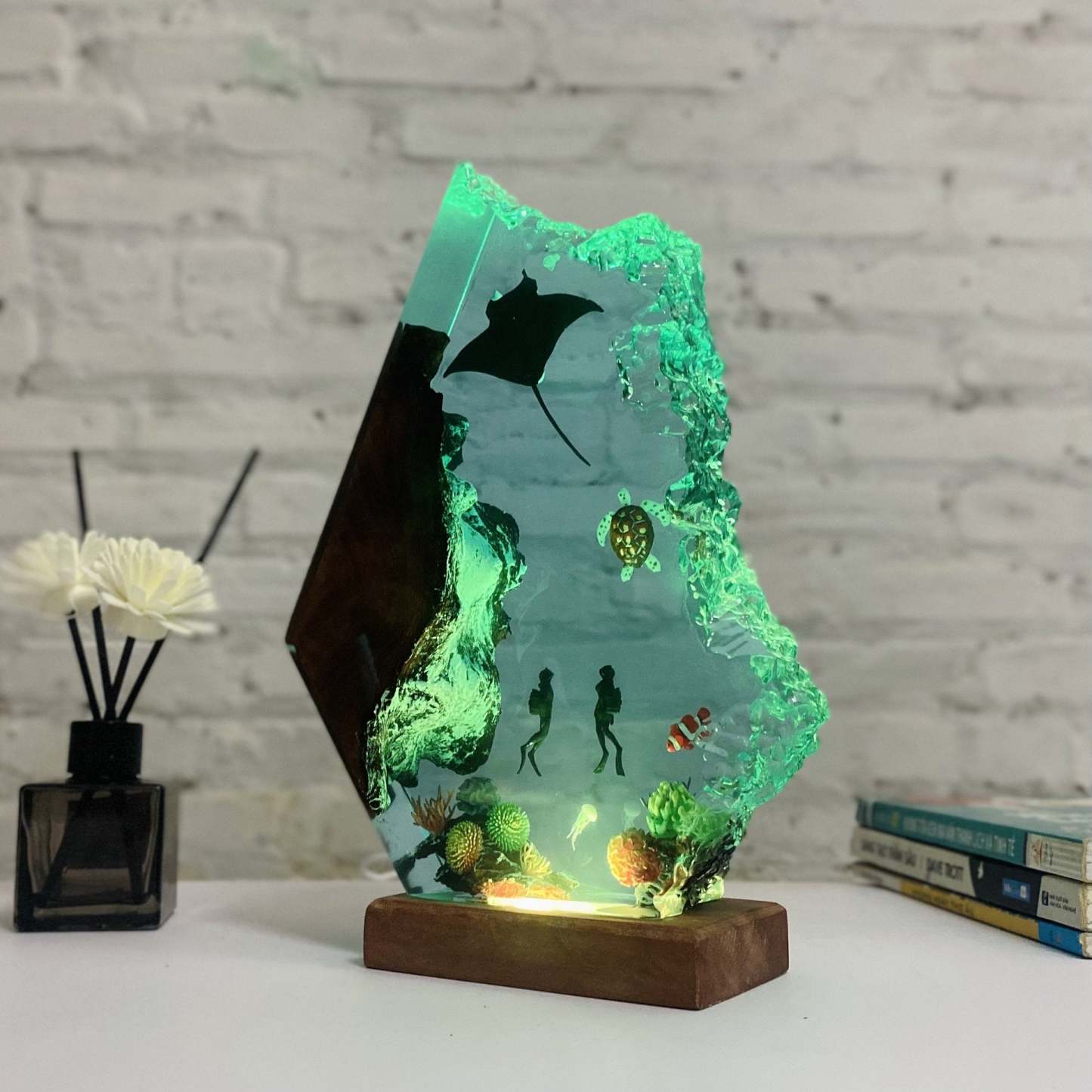 Manta Ray and Couple Diver Night Light Art Home Decor Unique Birthday Gift IdeasValentine's Day